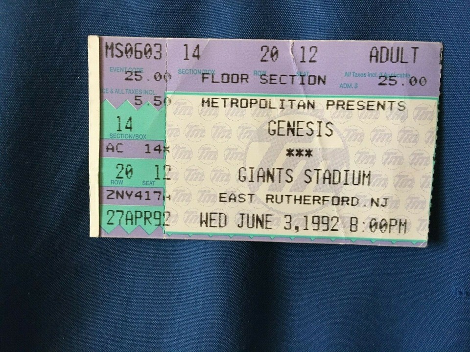 Vintage Used Concert Ticket Genesis @ Giants Stadium 6/3/92 *Nice Condition* BT2