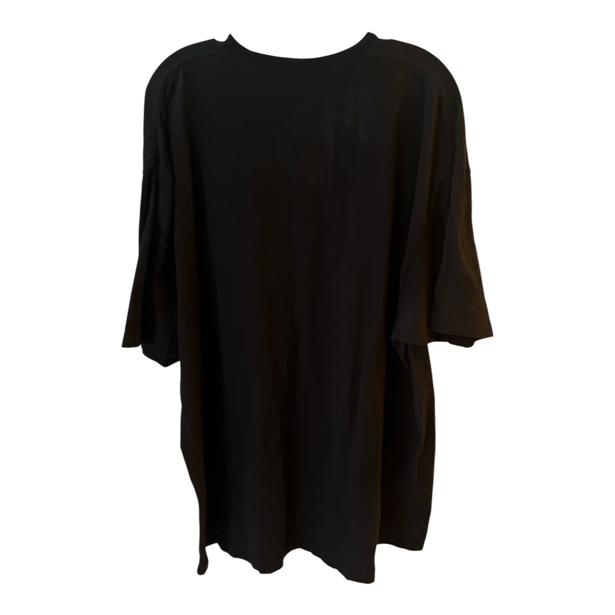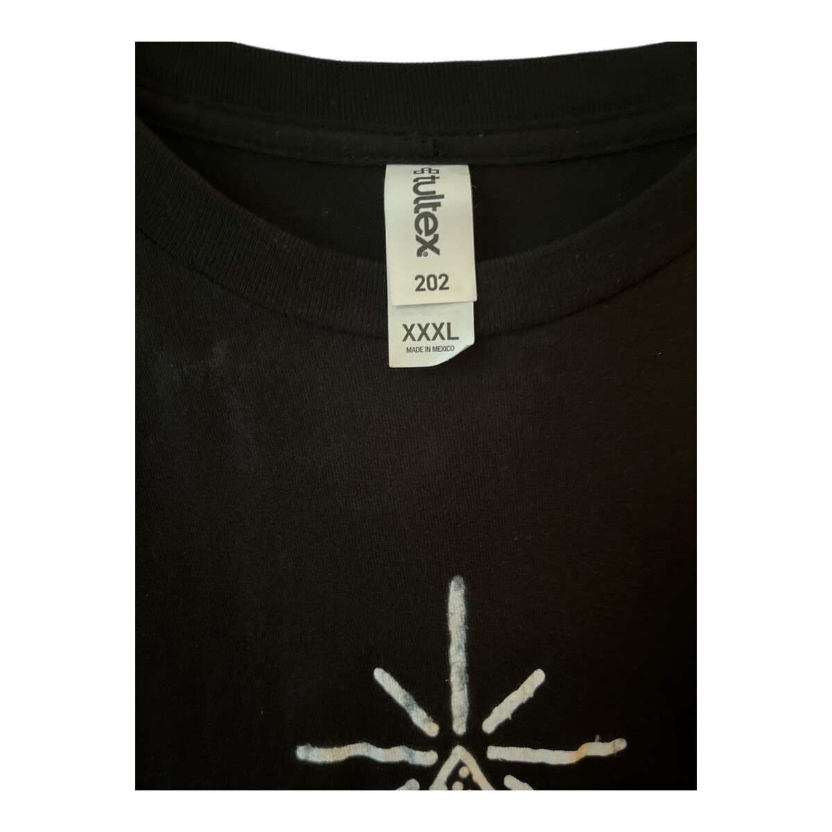 Black graphic T-shirt featuring the Deathly Hallows symbol in a distressed white print. Made by Tultex with a relaxed oversized fit in size XXXL. A great casual piece for fans of wizard and fantasy themes, perfect for everyday wear or layering.