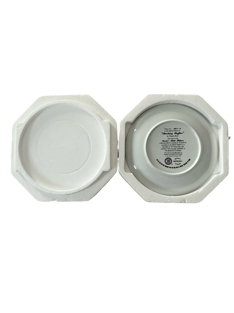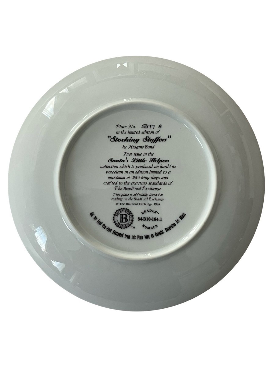 Bradford Exchange collector plate titled Stocking Stuffers by Higgins Bond, part of the Santa?s Little Helpers collection.
