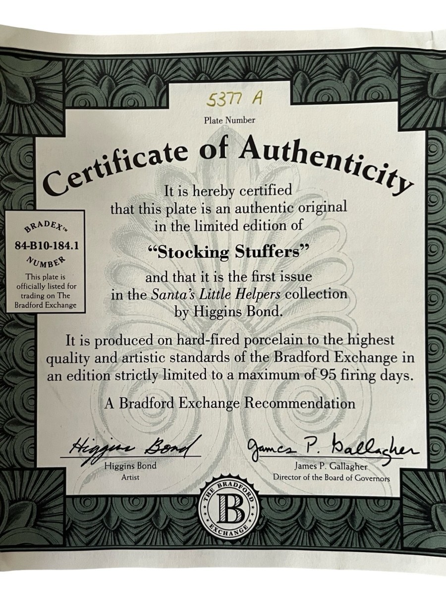 Bradford Exchange Stocking Stuffers Plate Santa’s Little Helpers Higgins Bond Ca