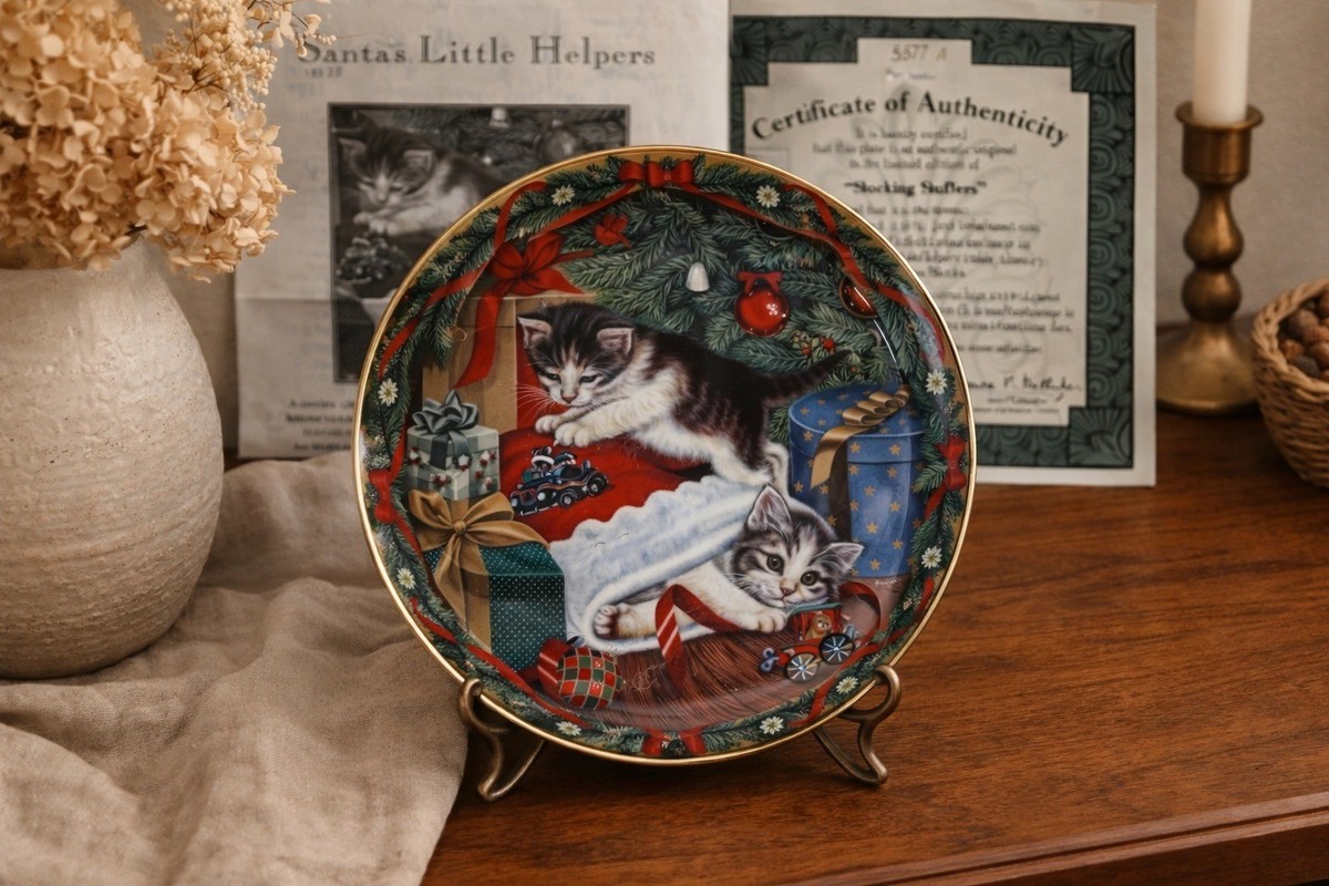 Bradford Exchange Stocking Stuffers Plate Santa?s Little Helpers Higgins Bond Cat Christmas Plate 1994