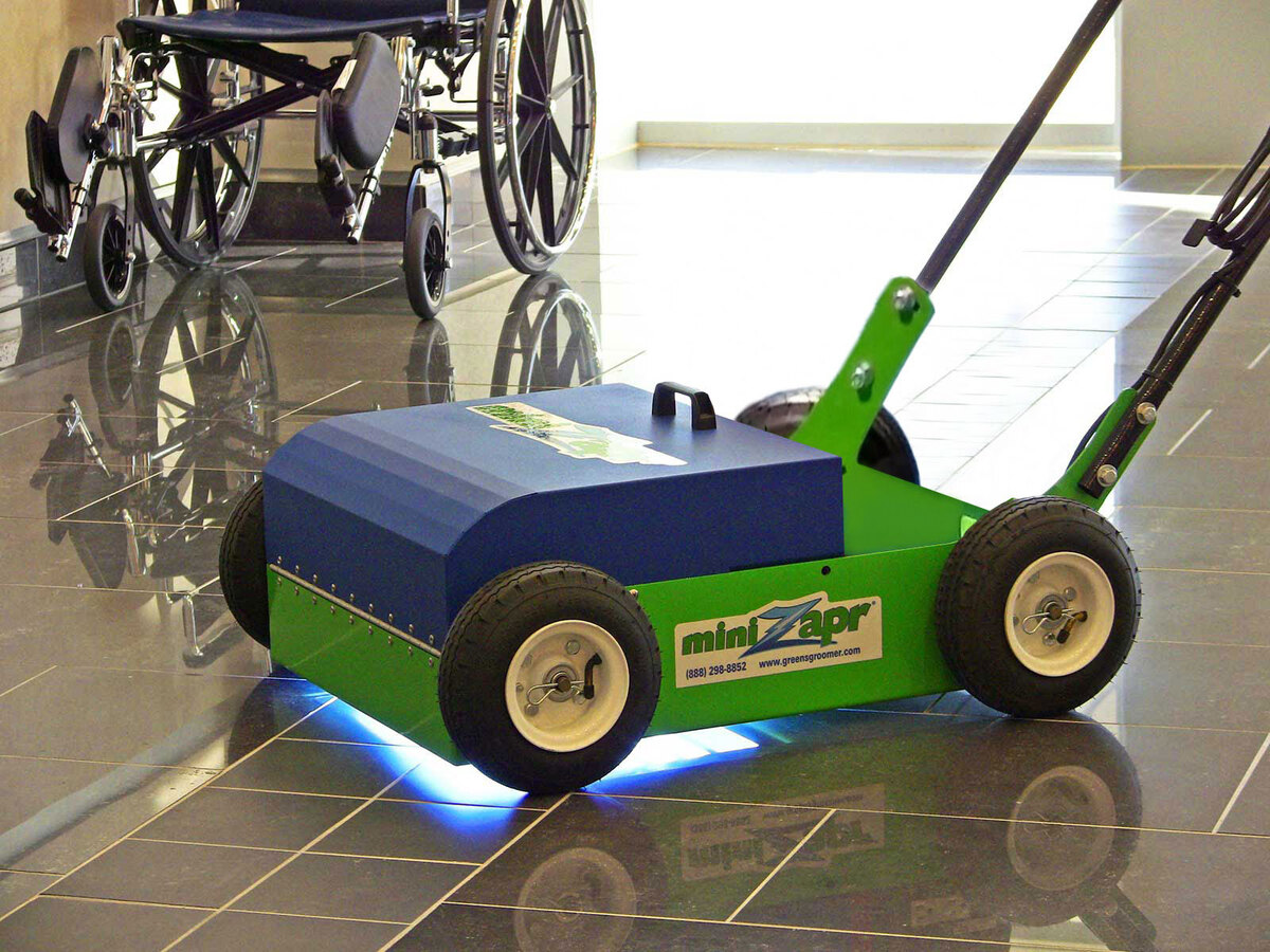 We answers the synthetic turf sanitation question with the GreenZapr and miniZapr. After launching the two Germicidal UVC units, We recognized the need for truly mobile and affordable sanitation solutions for the indoor/institutional market, including sports fitness facilities, nursing homes/assisted living complexes, food-service operations, and hotel/resort properties. The miniZapr is that solution and provides effective control over harmful pathogens by delivering powerful UVC in an easy-to-use, cost-effective solution.