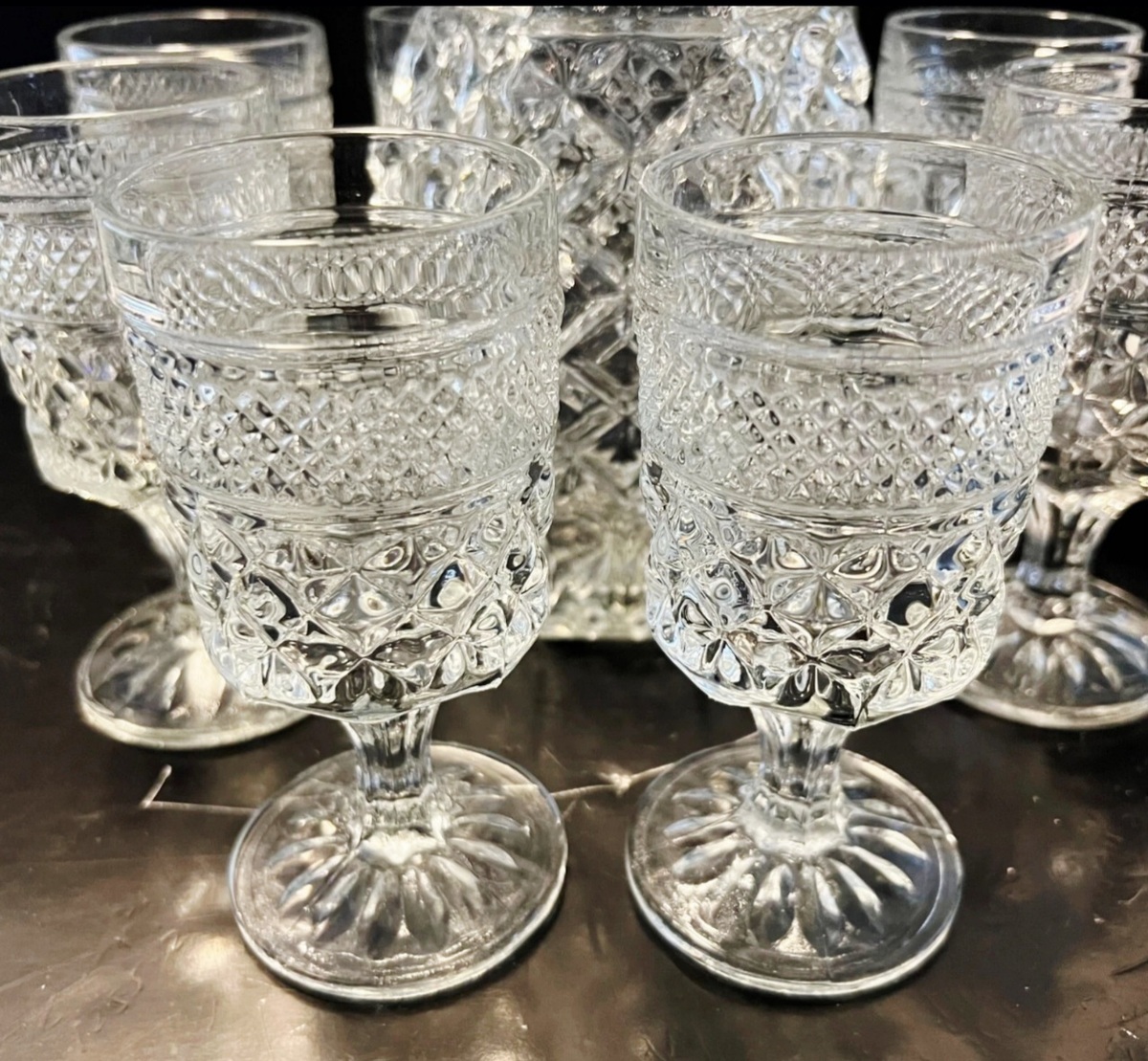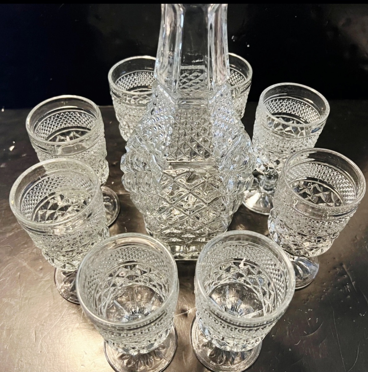 Anchor Hocking Wexford Wine Decanter with Stopper & 8 Wine Claret Stems