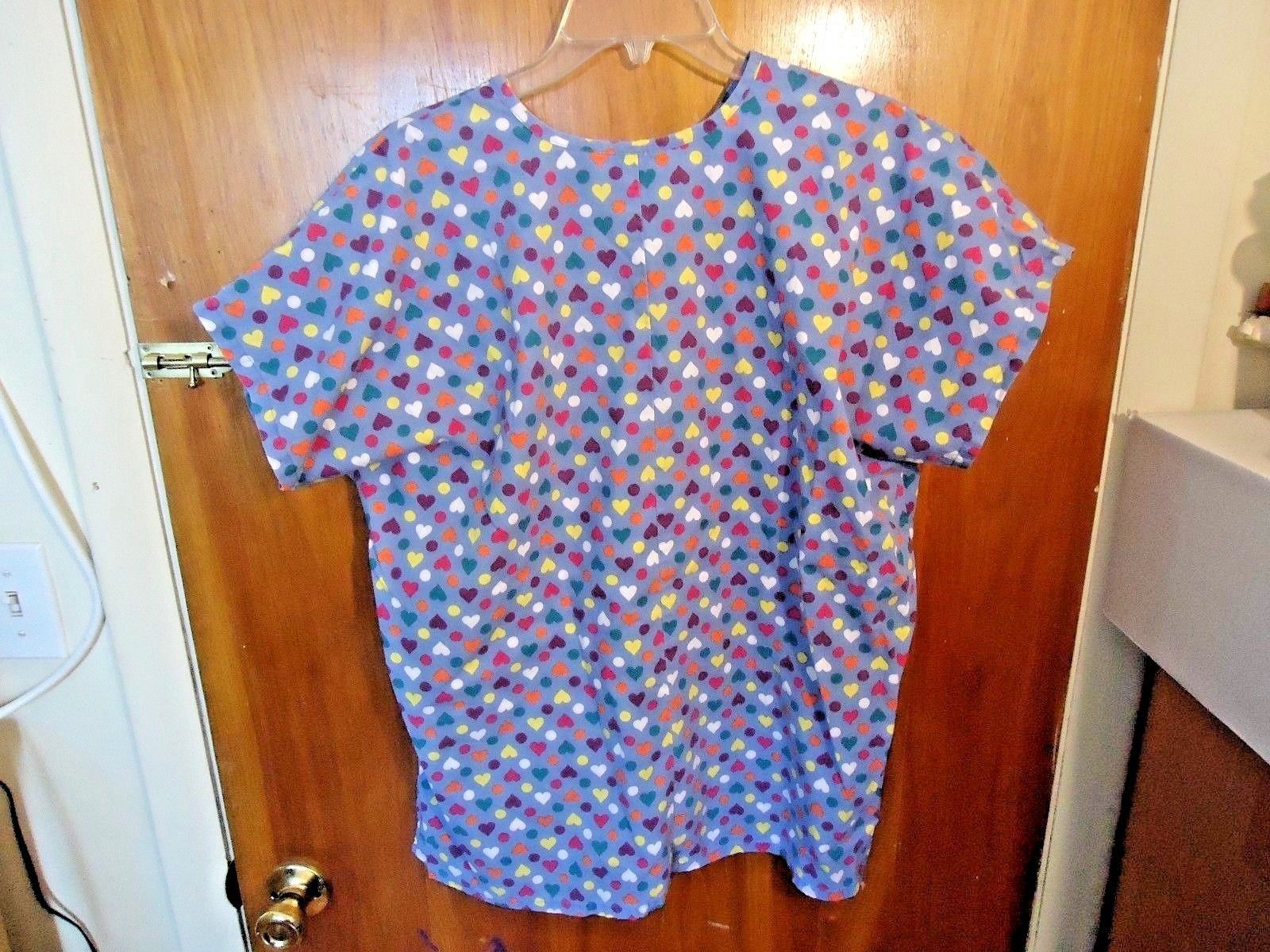 Here is a MHD Size M 10-12 Heart Circle Themed Blue Multi Color Scrubs Top " BEAUTIFUL TOP ".If you have any concerns or questions about this item(s) please ask before bidding / purchasing this item(s).Thank You.-(CL12)