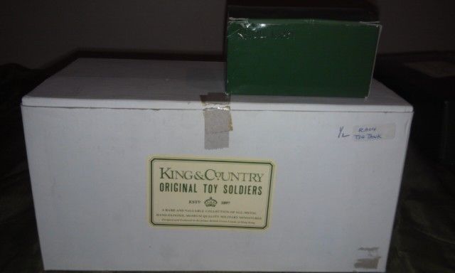 king country world war 2 russian t34 tank with two riders. long retired. ra04. . tank is complete and both the tank and the riders come in their original individual boxes. tank box has some minor stain inside on styrofoam.