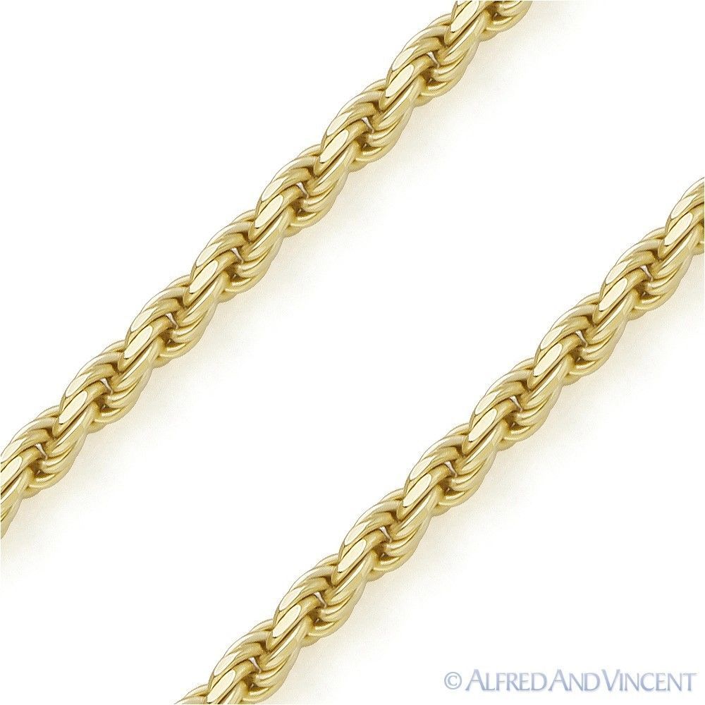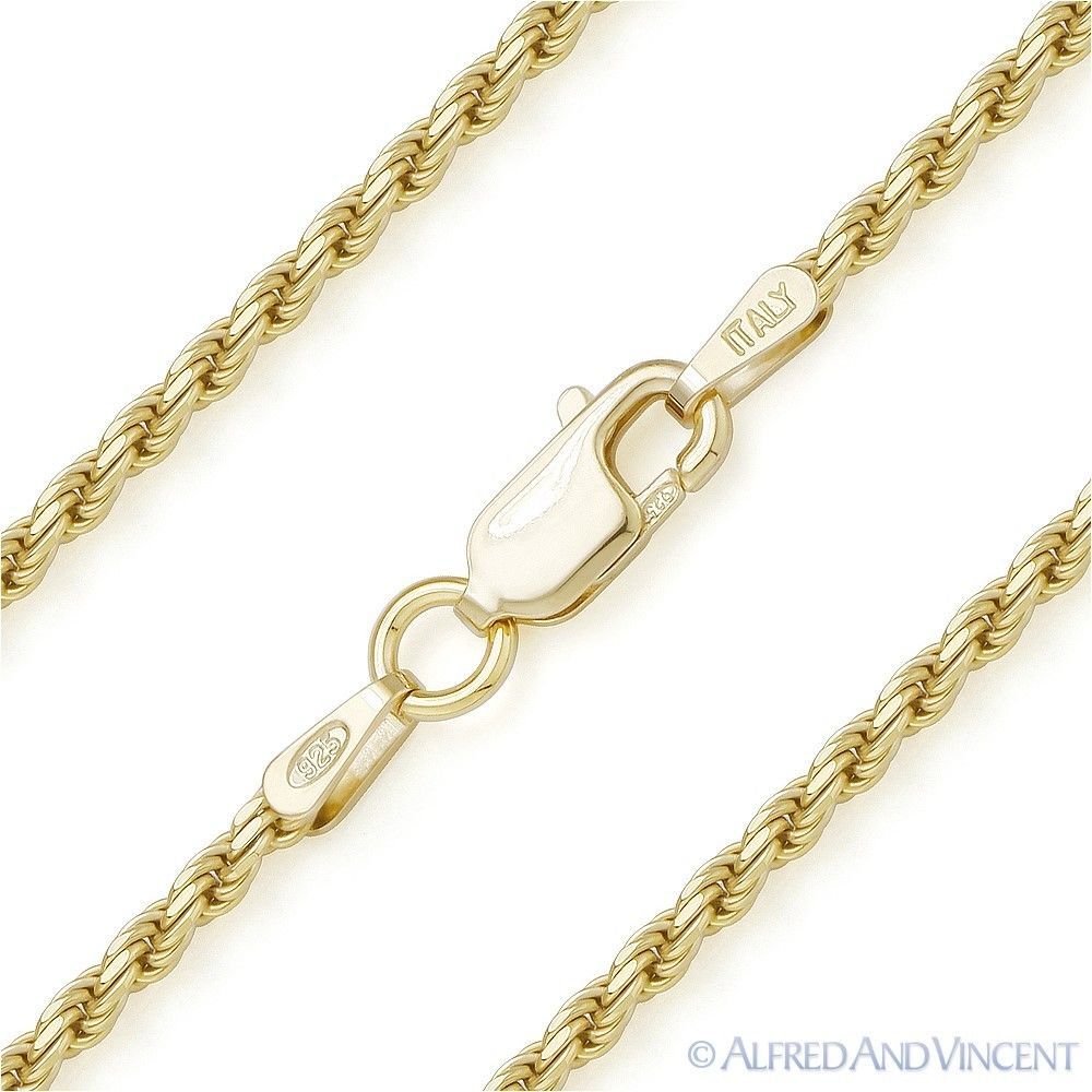The featured Italian-made 1.8mm chain necklace is cast in .925 sterling silver and showcases a classic twist-rope chain design plated with 14k yellow gold then finished with a lobster-claw clasp for secure wear.
