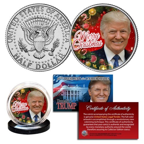 Facing near-certain impeachment following the Watergate scandal, Richard Nixon resigned the presidency in 1974. Here is your opportunity to own or gift the ?FIRST U.S. PRESIDENT IN HISTORY TO RESIGN ? 40TH ANNIVERSARY ? WATERGATE 1974-2014? colorized 2014 JFK Kennedy Half Dollar U.S. Coin, which has been enhanced with a beautifully colorized image by the Merrick Mint. Each coin comes in a premium coin capsule with a full color Certificate of Authenticity to guarantee that your coin is authentic and recognized by every monetary authority around the world. This Legal Tender United States coin has been colorized with an application of special inks directly to the surface of the coin, using a unique and painstakingly multicolor coin process, which achieves a level of detail, color saturation, and durability that is #1 in the coin industry. The result is an everlasting colorized coin collectible of ultra-high quality. The 2014 Kennedy half dollar is a U.S. fifty cent coin with mint marks chosen at random.