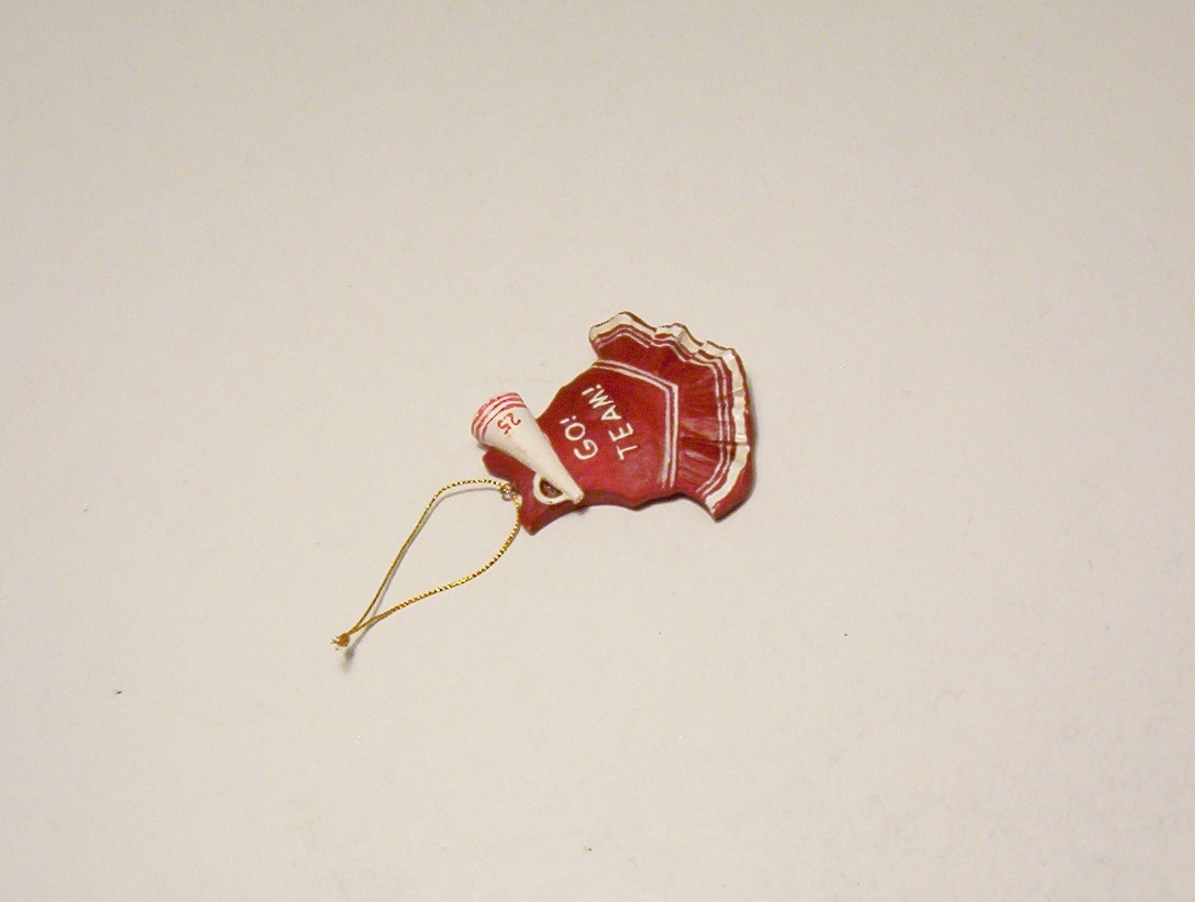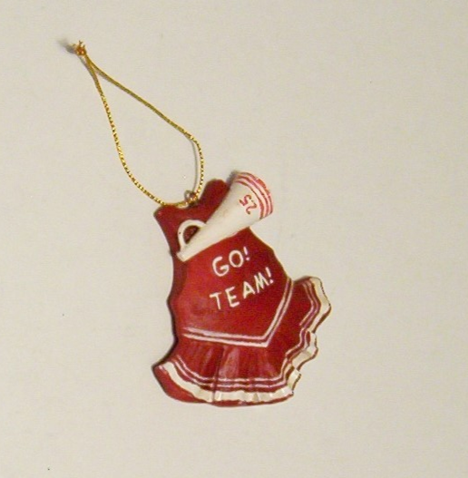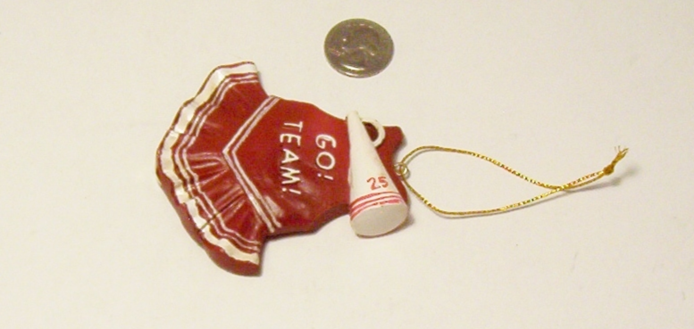 Christmas Ornament Cheerleader Outfit Megaphone Red White Resin