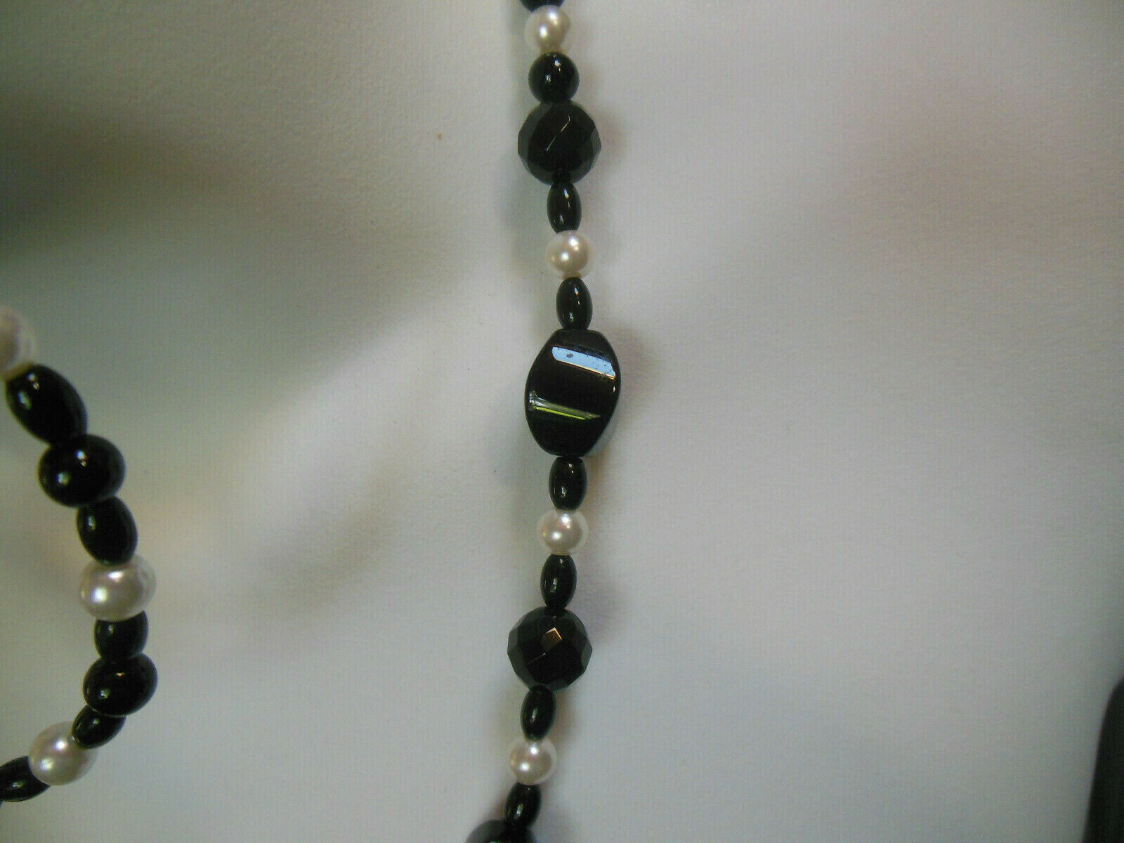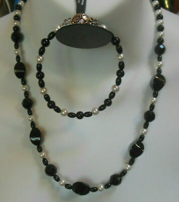 Vintage Black Glass Bead Faux Pearl Necklace Bracelet
