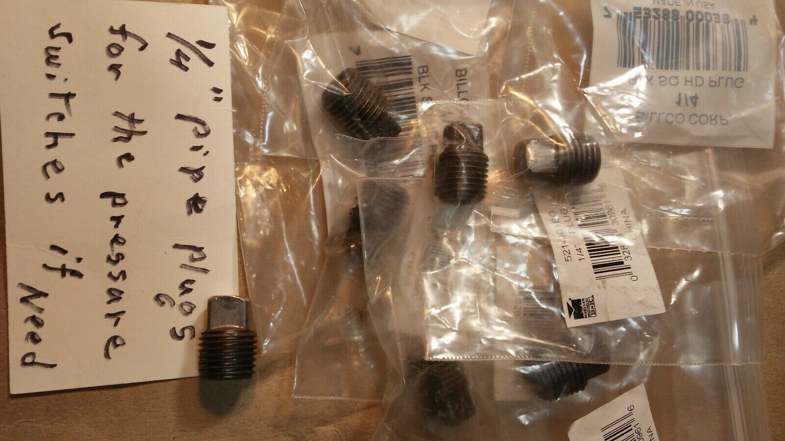 Lot of 7 BILCO 1/4" Black, Square HD Pipe Plugs for Pressure Switches - New