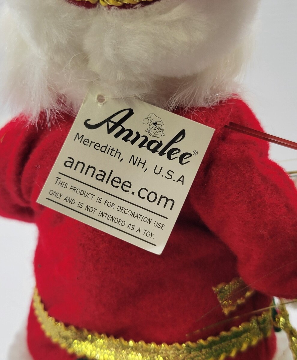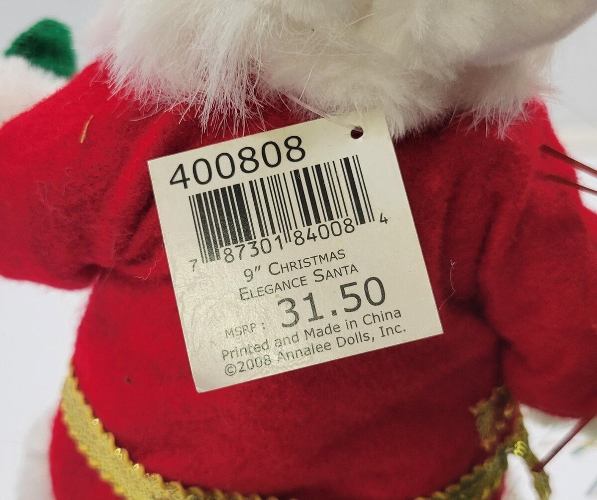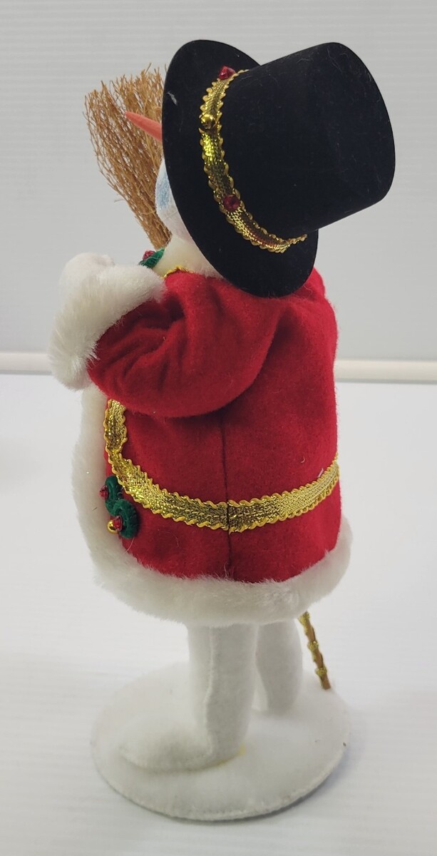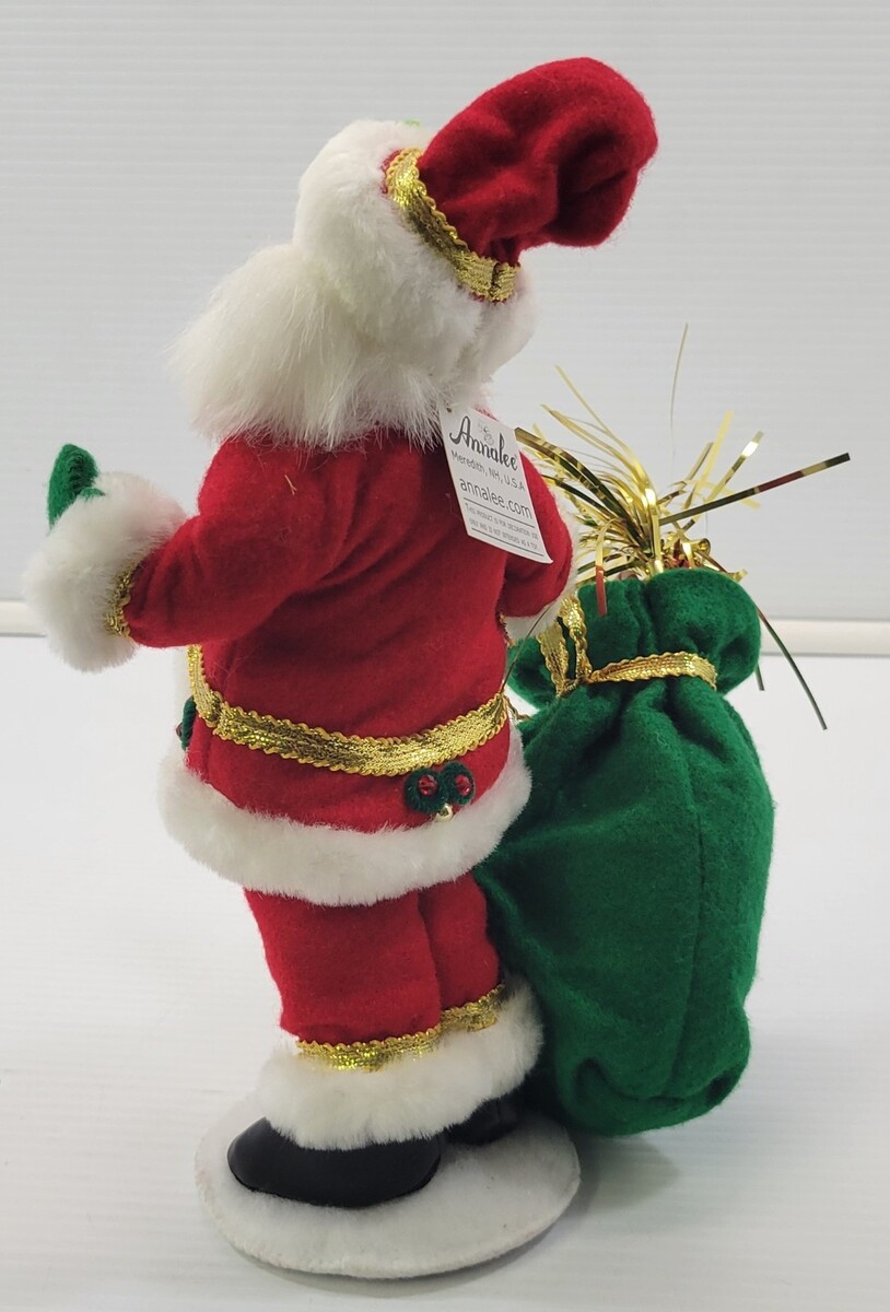Annalee Dolls Snowman and Elegance Santa Christmas Decoration Figures Fabric figures Each measures roughly between 9" and 10" Each has an approximate 4" diameter base Figures are in overall good used condition with possible slight signs of seasonal use and storage.