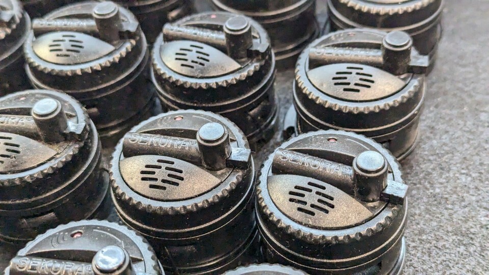 (Lot of 48) SEKURA AM/RF Self-Retracting BoxGrip 2-Alarm with Lanyards