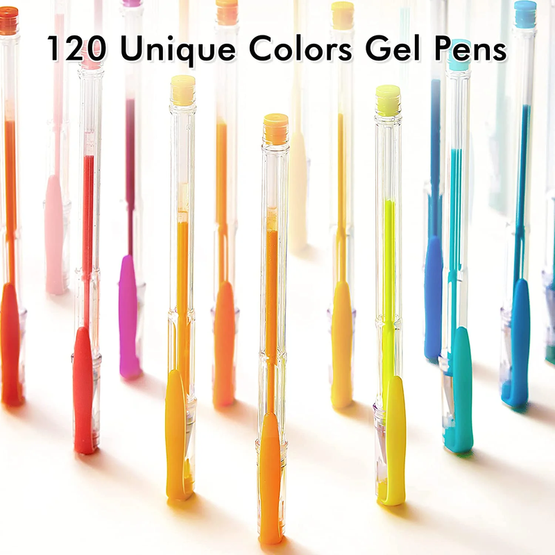 - 120 Unique Colors (No Duplicates) Gel Pens Colored Gel Pen Set for Adult Colorin