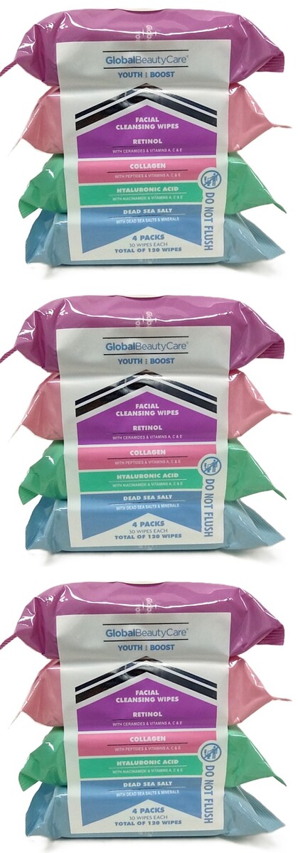 3 x 4 pk = TOTAL 12pk Global Beauty Care Youth Boost Cleansing Facial, Collagen,