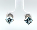 pair of 14k white gold stud earrings featuring cushion cut light blue