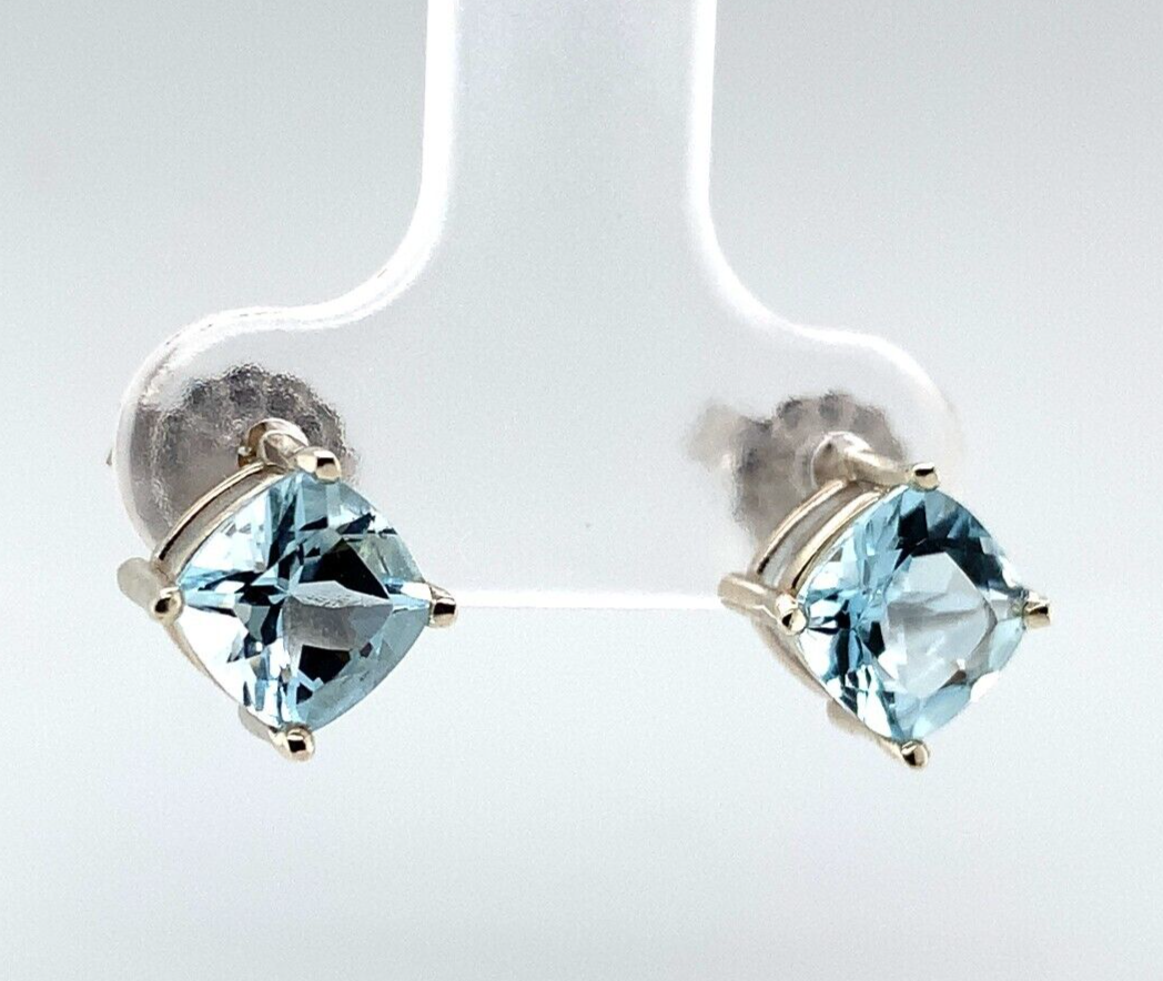 14k Gold 1.82cttw Genuine Natural Aquamarine Cushion Cut Stud Earrings (#J6375)