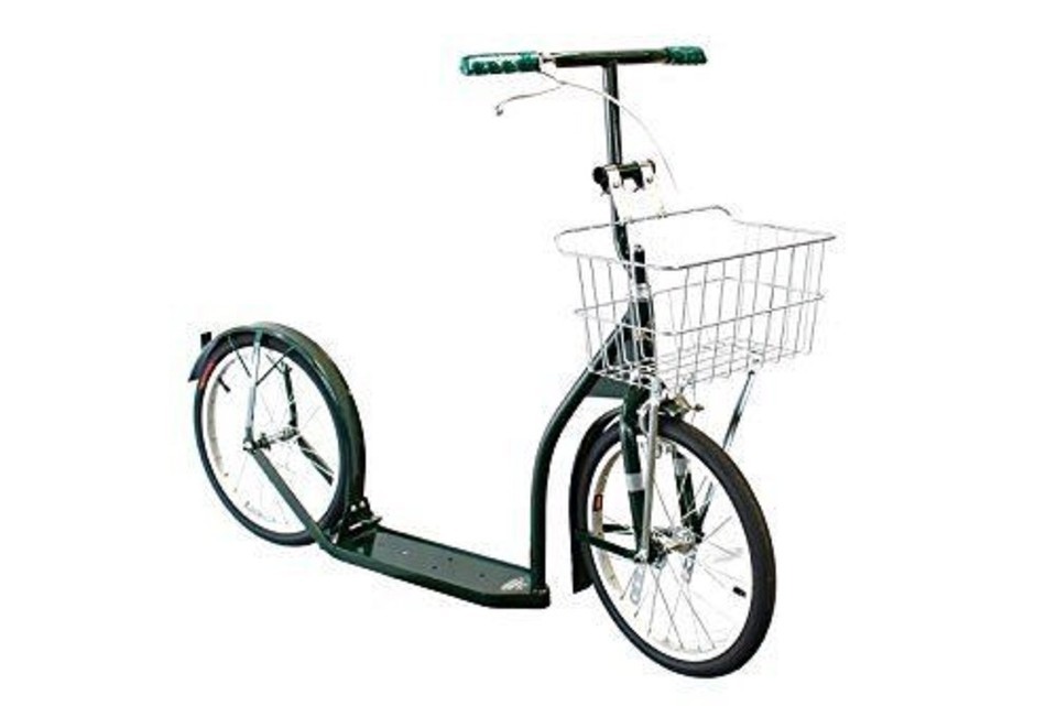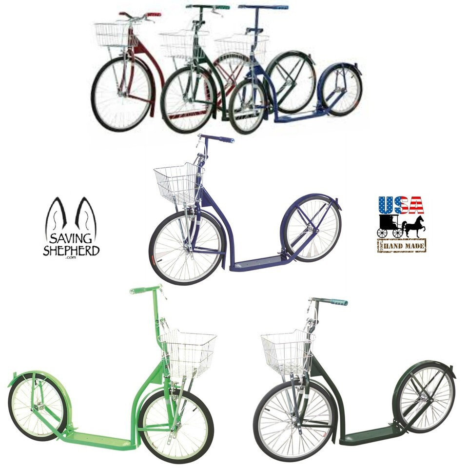 16" AMISH KICK SCOOTER ~ DARK GREEN ~ Foot Bike w/ Basket & Brakes MADE in USA