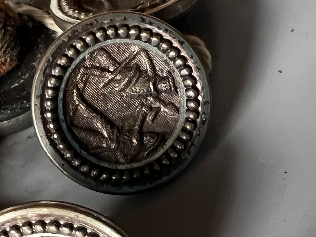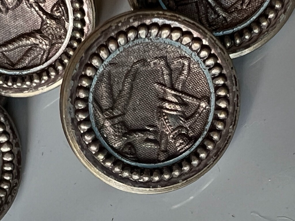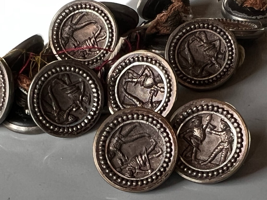 - 16 Antique Metal Buttons Medieval Knights Fighting Shank 3/4"