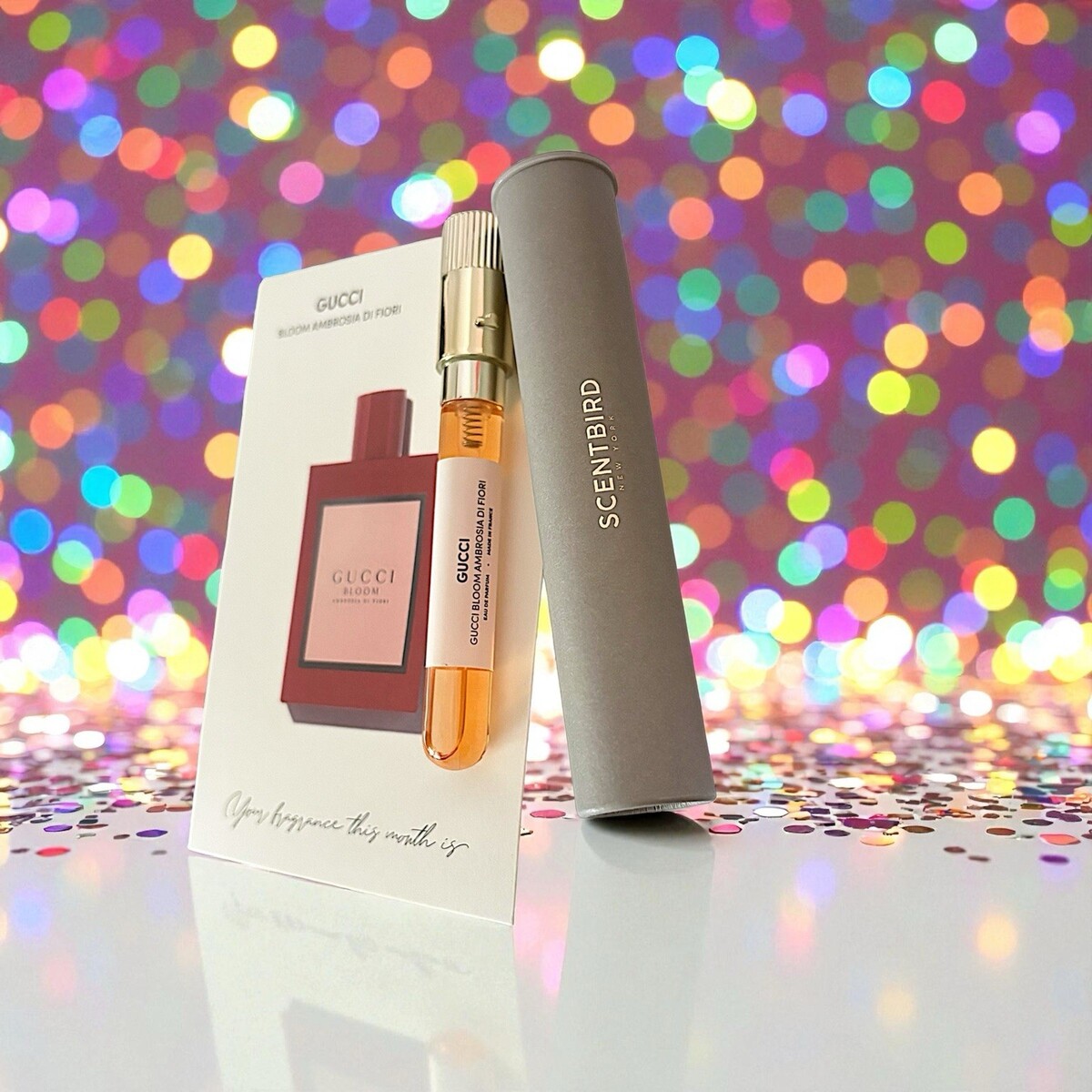 ? Gucci Bloom Ambrosia di Fiori ? Eau de Parfum (0.27 fl oz / 8ml Travel Spray) From Scentbird Subscription ? Full Size Retails for $145 Fragrance Description: Gucci Bloom Ambrosia di Fiori celebrates authenticity and self-expression with a bold, luxurious bouquet of white florals. This eau de parfum intense builds upon the signature Gucci Bloom with a deeper, more sensual blend of jasmine bud, Rangoon creeper, Damask rose, tuberose, and orris root. A lush, captivating fragrance that evokes romance, confidence, and timeless femininity. Fragrance Family: White Floral Scent Type: Rich, Elegant, Romantic Occasion: Evening / Special Occasion Gender: Feminine Notes: ? Top: Jasmine Bud ? Heart: Rangoon Creeper, Damask Rose ? Base: Orris Root, Tuberose Product Details: ? Authentic 0.27 fl oz / 8ml atomizer from Scentbird ? Condition: New Without Box ? Never Sprayed ? Perfect for sampling, gifting, or travel ? Scentbird exclusive travel vial (subscription issue) ? Full-size 3.3 oz bottle retails for approximately $145 ? A rich, floral masterpiece ? elegant, confident, and deeply feminine. Ships within 1 business day via USPS Ground Advantage. No returns accepted unless item arrives damaged. All items are 100% authentic and sourced from verified subscriptions or authorized retailers. Smoke-free environment ?