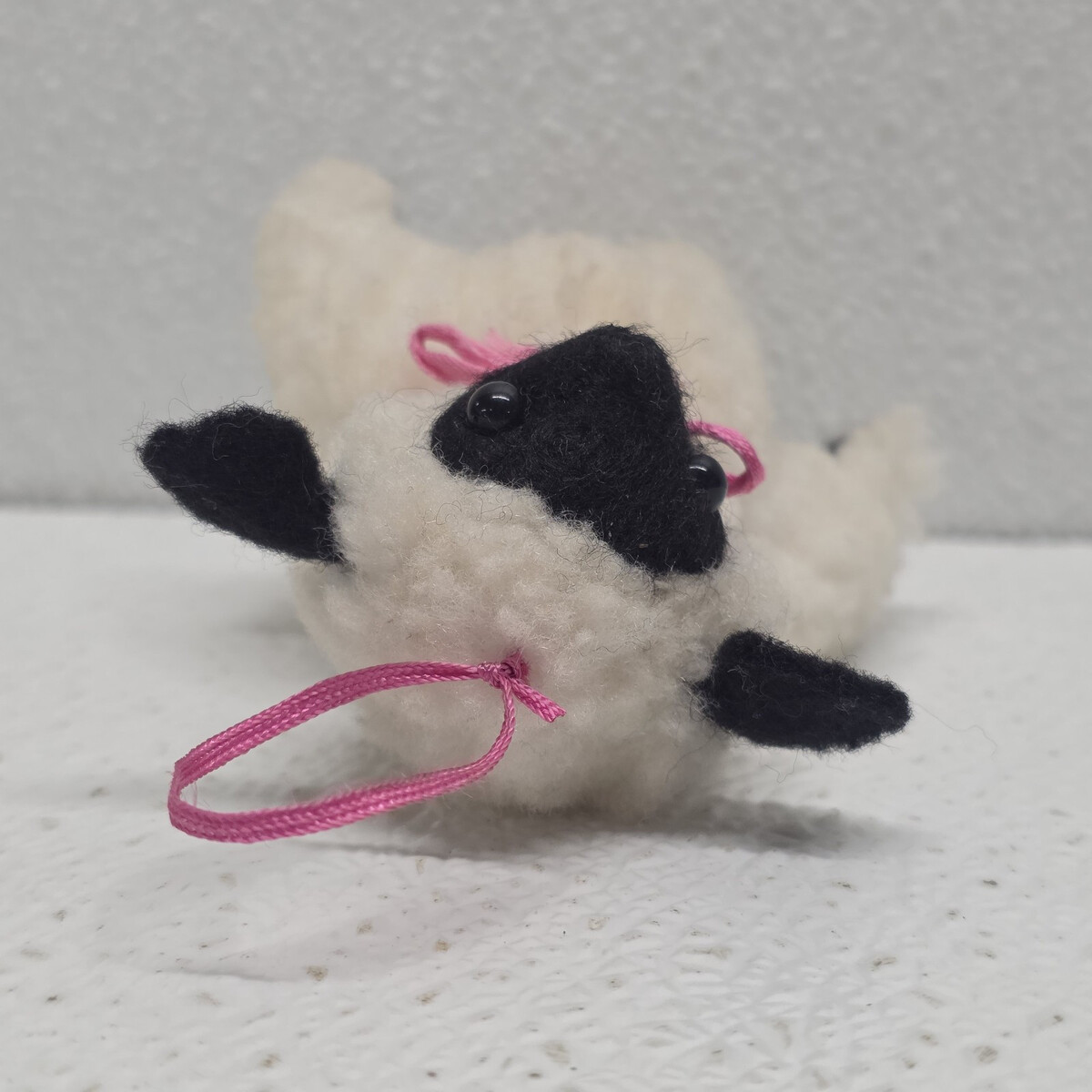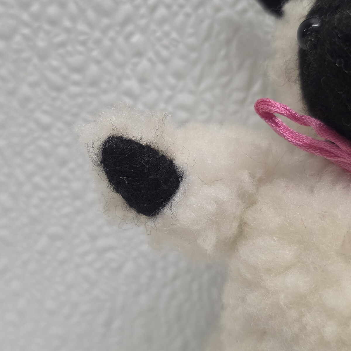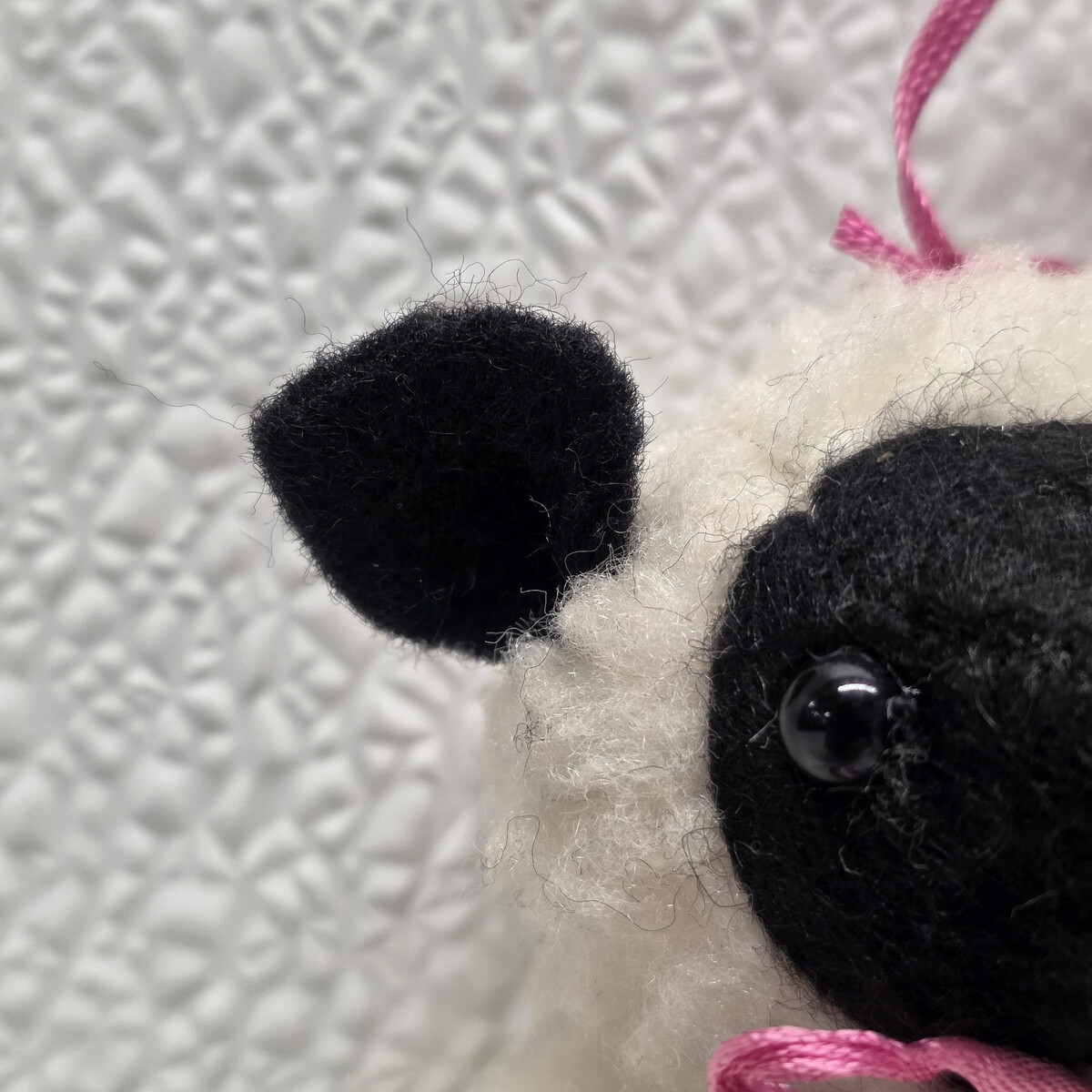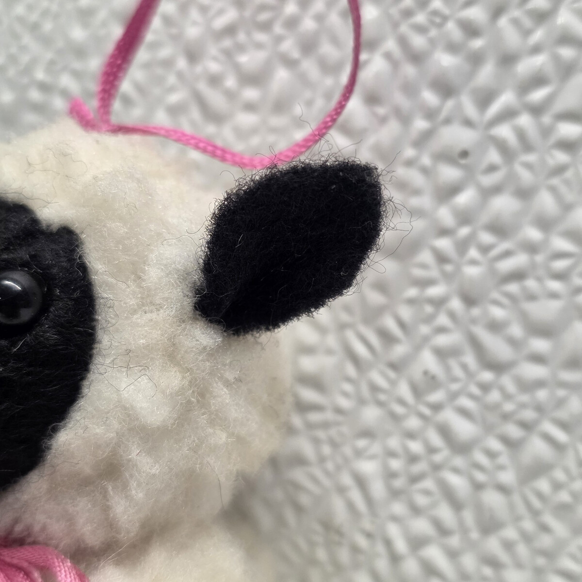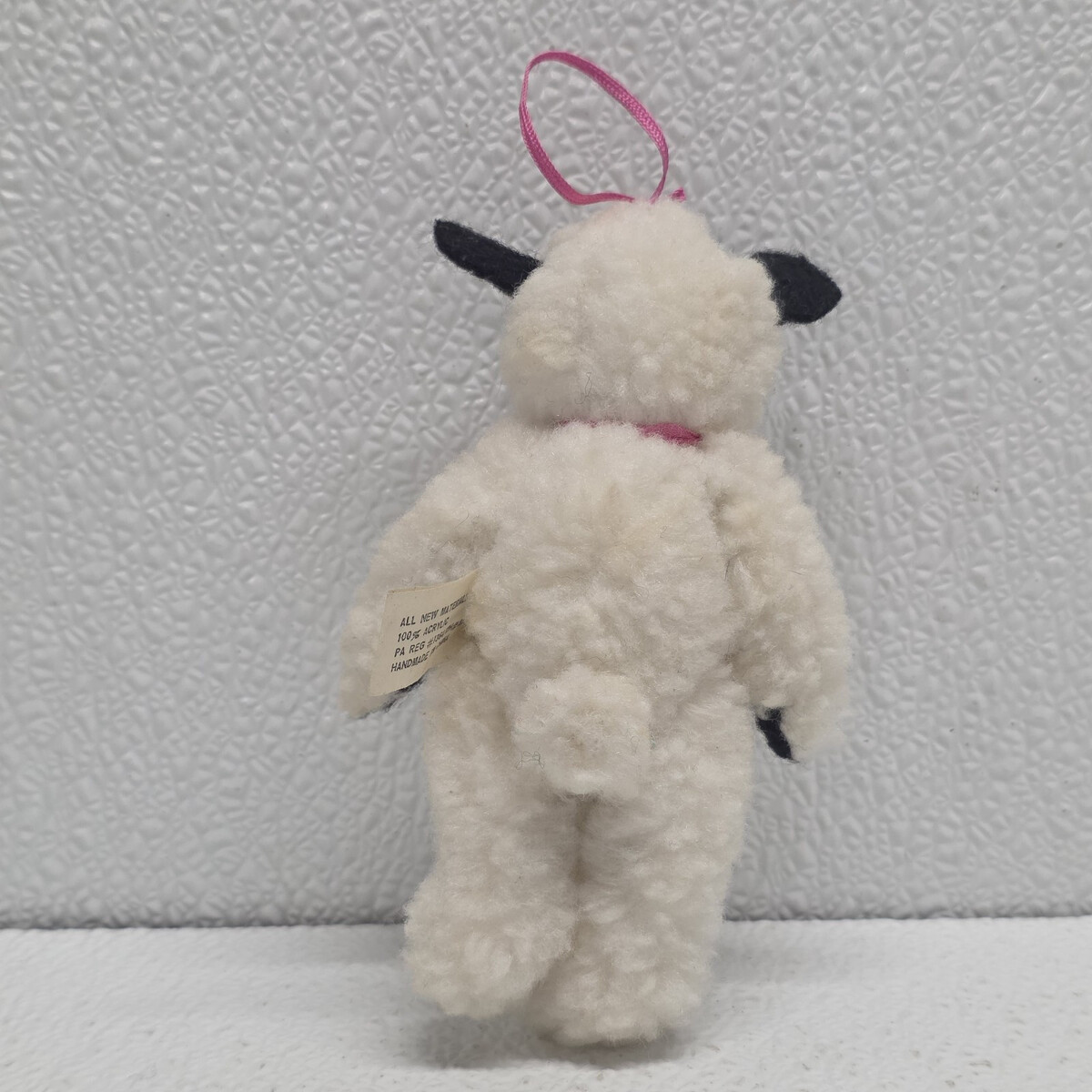 - Boyds 5" Lamb Jointed Plush Pink Bow Black Ears, Hands, Face 1990 Vintage
