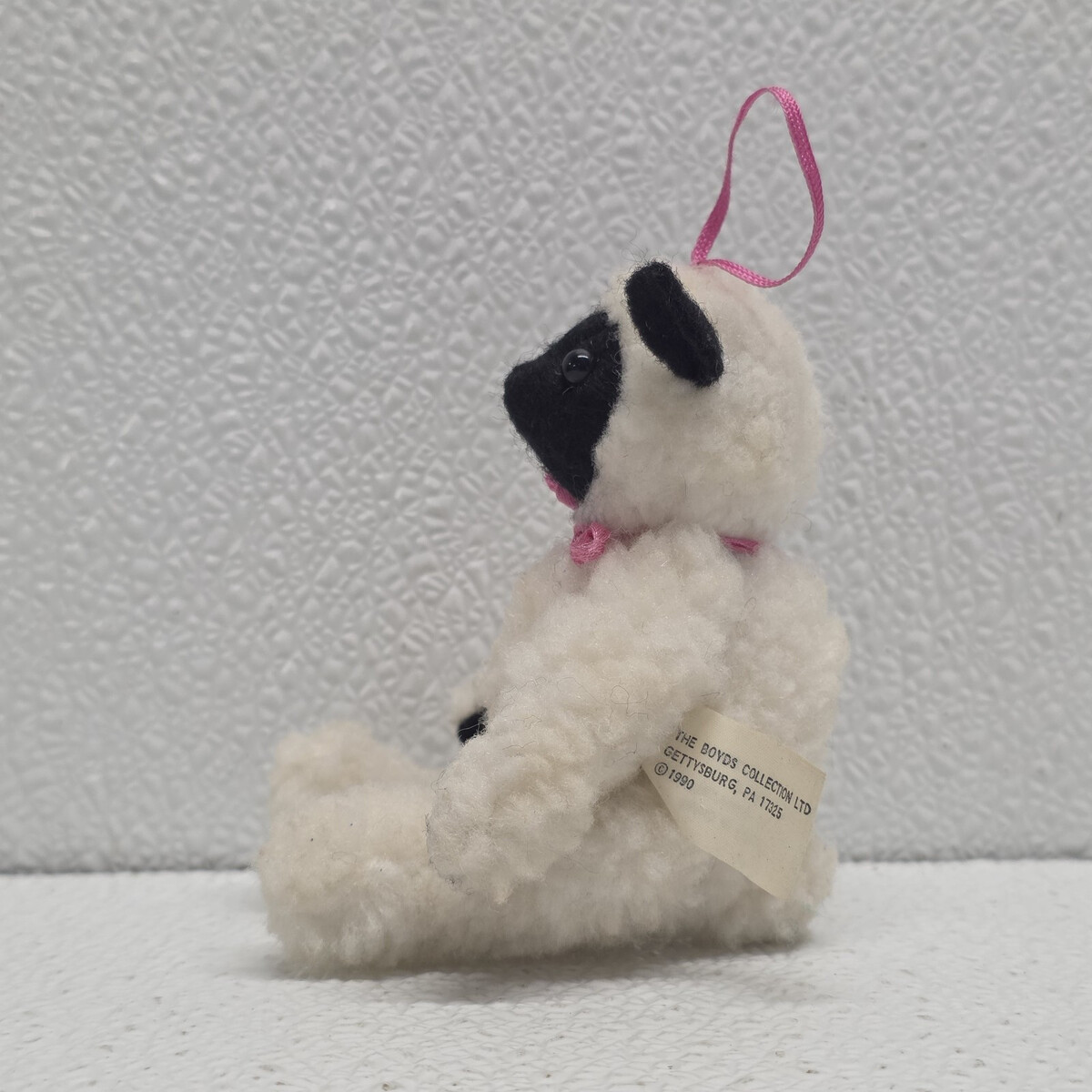 Boyds 5" Lamb Jointed Plush Pink Bow Black Ears, Hands, Face 1990 Vintage