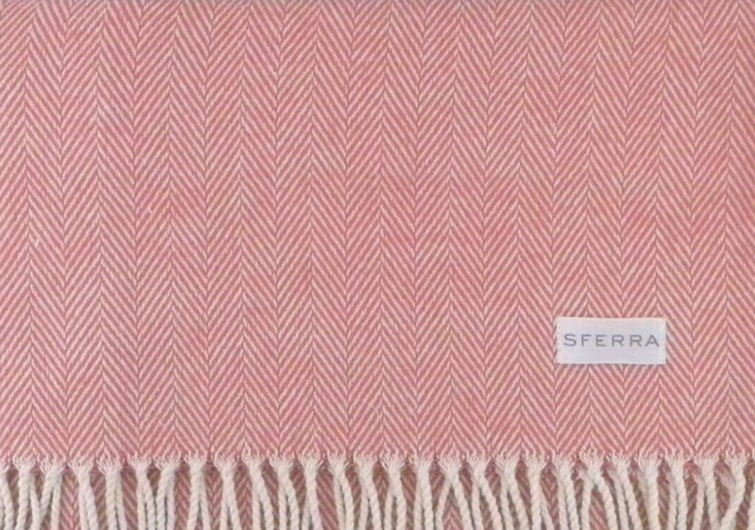 Sferra Celine Salmon Herringbone Weave, Fringed 100% Cotton Throw Blanket Brand new in original large Sferra packaging Snuggle up with this soft and comfy pure cotton throw with a subtle herringbone weave, blending soft colors with natural. The brushed cotton gives it a plush, alluring texture. Finished with twisted natural fringe. Model: Celine #9701 Pattern: Herringbone weave Color: Salmon with natural twisted fringe Material: 100% Brushed cotton Country of Manufacture: Portugal Dimensions: Approx. 51? x 71? Care: Machine wash cold, tumble dry on low Celine is light-weight, yet warm and cozy, Easy care, machine washable. Makes a great decorative touch for any bed or chair. ----------- ALL SALES ARE FINAL! - Please carefully review the entire description, photos and color, submit questions prior to purchase as there are no returns. - All our Sferra products come direct from manufacturer. - Ships from a pet free, non-smoking and climate controlled area. - Picture may not reflect true colors due to various lighting conditions.