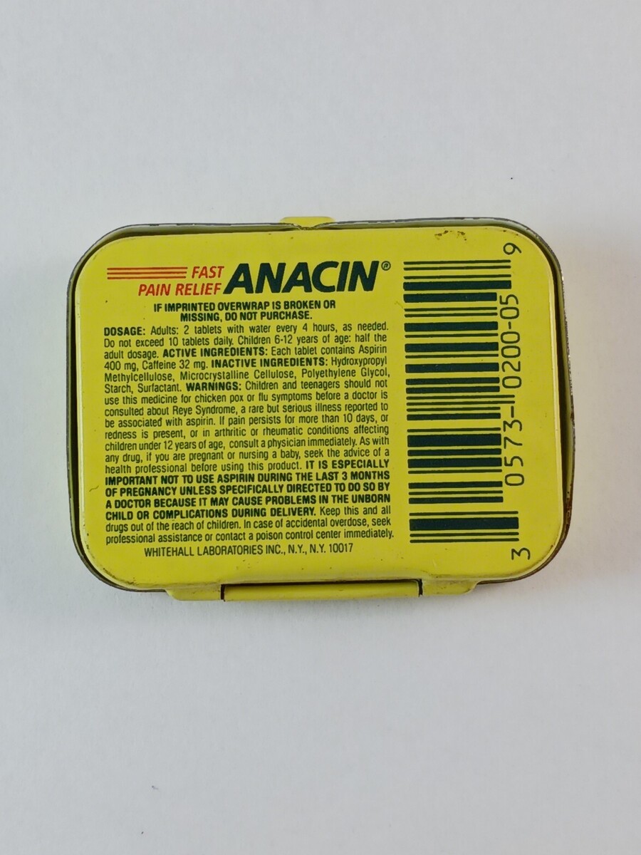 The product is a lot of three vintage medicine tins featuring brands such as Anacin, Bayer, and St. Joseph. These tins are advertising items that are empty and measure 1 7/8 x 1 3/8 x 1/4 inch in size. With a colorful design and originating from the United States, these tins are collectibles that would be a great addition to any memorabilia or advertising collection.