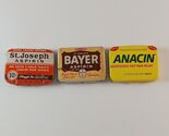 Anacin, Bayer, St Joseph Aspirin Tins, Lot of 3 Vintage Medicine Tins, Empty