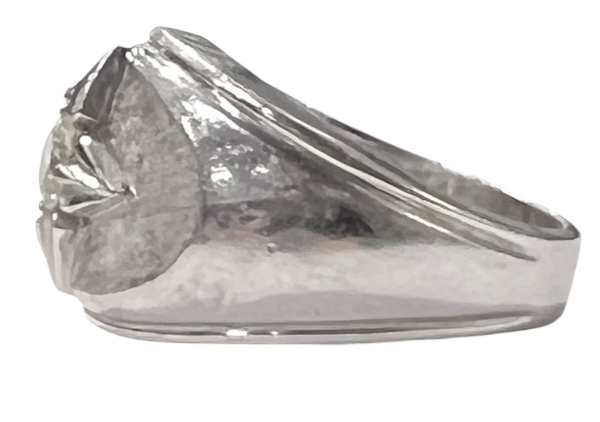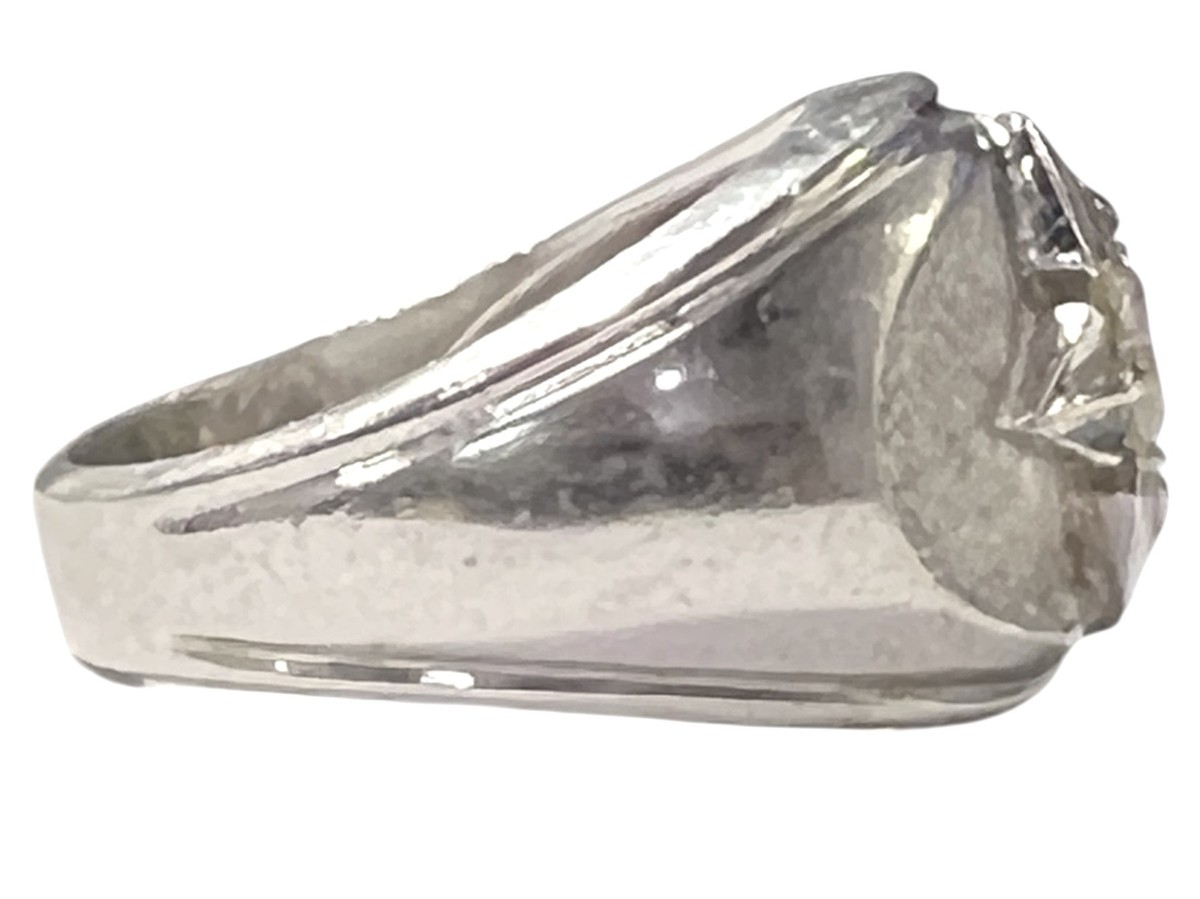 Type: Fashion RingWeight: 5.8Karat: 14ktMetal: White GoldGender: Men'sStyle: FancySize / Length: 8.25Owner applied: 14k 07Stone 1 quantity: 1Stone 1 shape: RoundStone 1 color: ClearStone 1 weight (total): .25Stone 1 type: DiamondCondition:Used