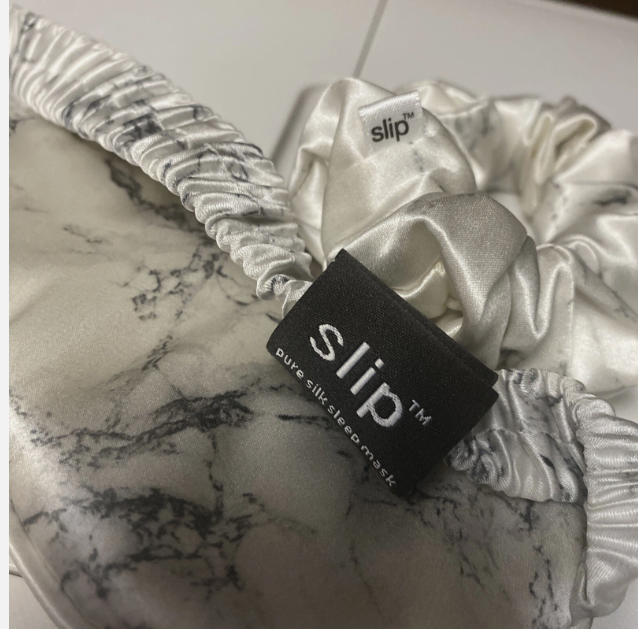 - Slip Pure Silk + Eye Mask, White Marble With Large Slip Hair Scrunchies Tie