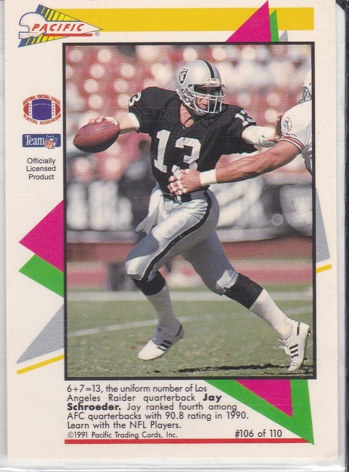 M) 1991 Pacific Football Trading Flash Card Jay Schroeder #106
