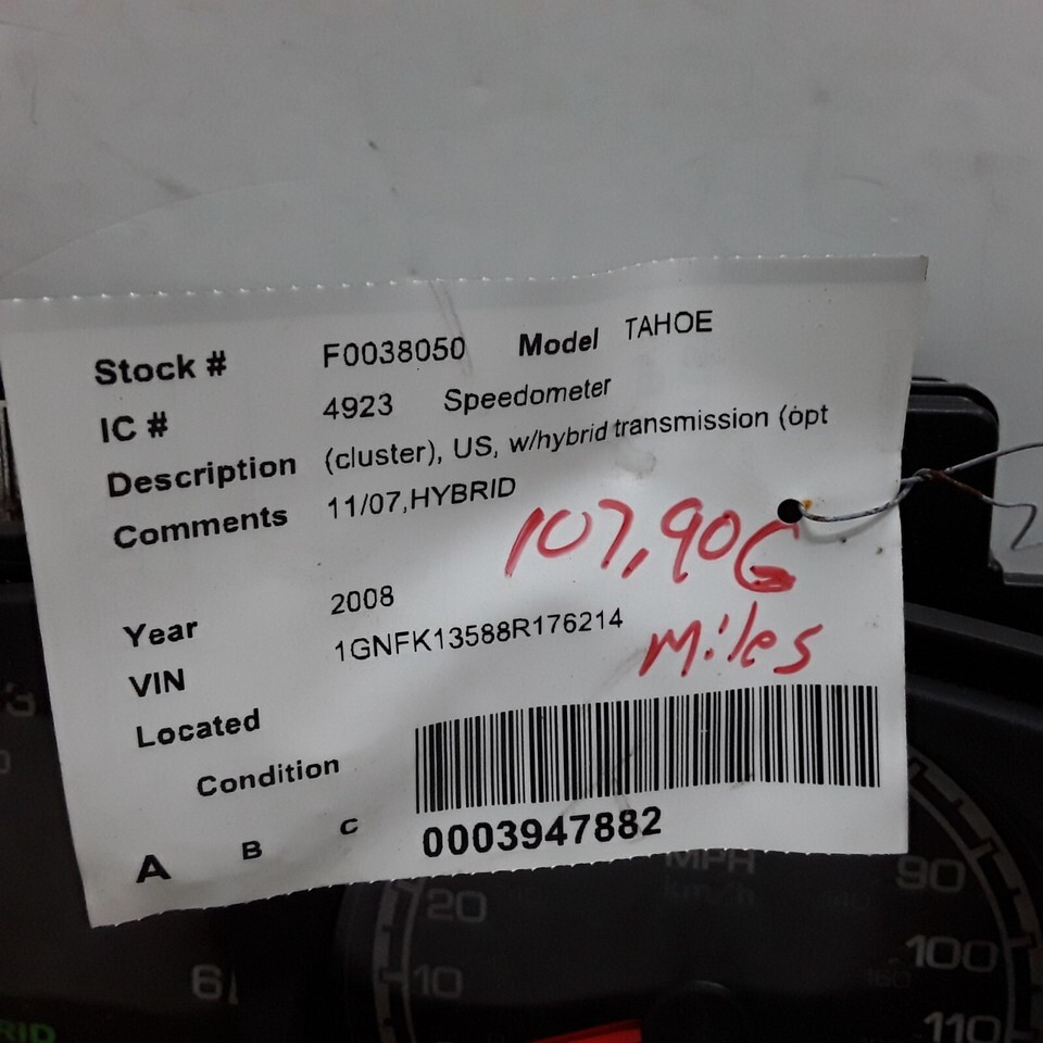 08 09 10 11 Chevrolet Tahoe GMC Yukon Hybrid models speedometer 107,906 Miles