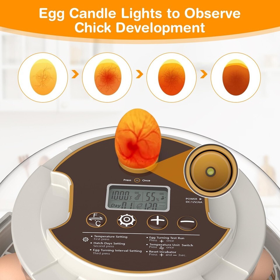 18 Egg Incubator for Hatching Egg Candler Automatic Egg Turning Humidity Monitor