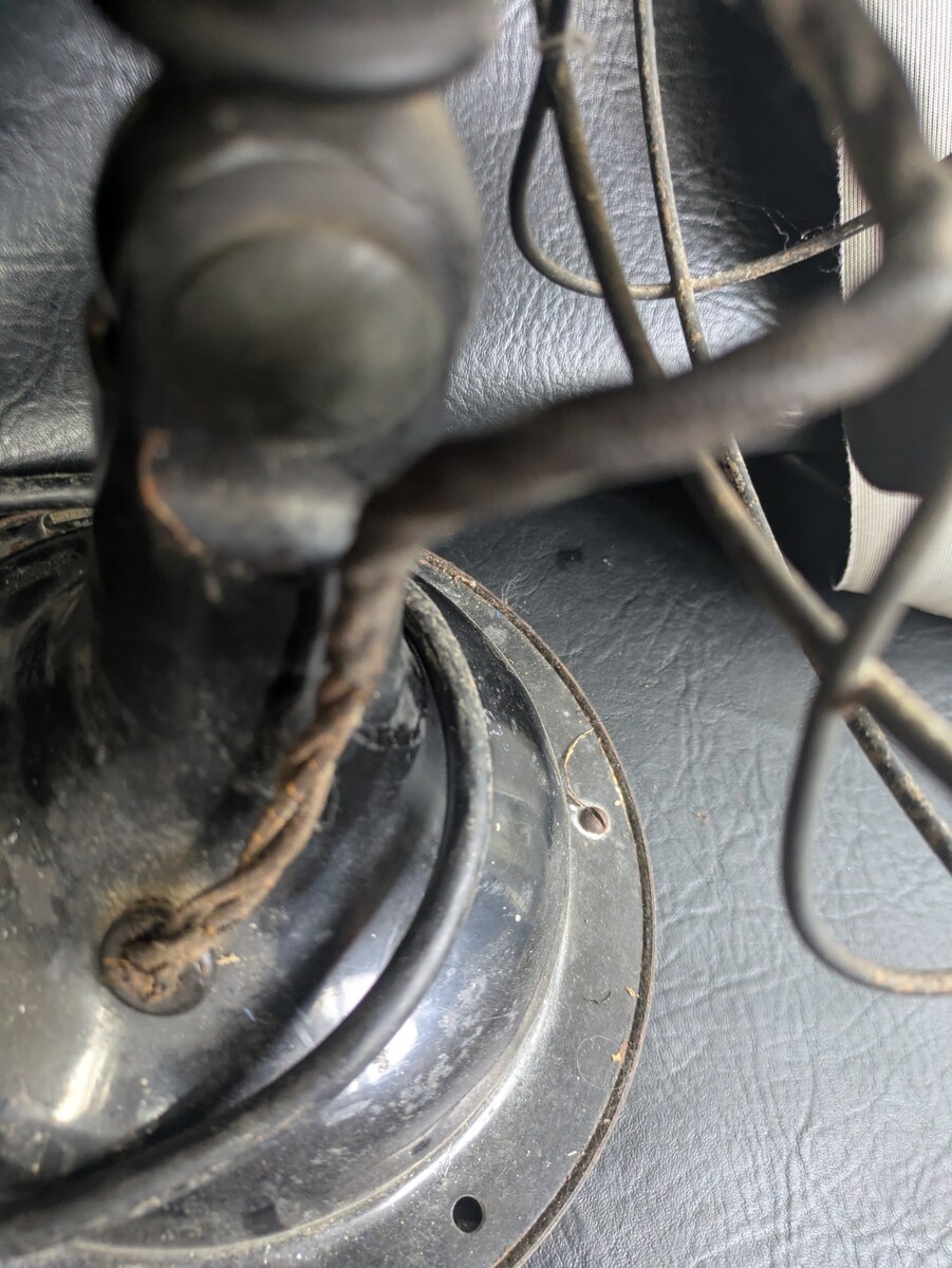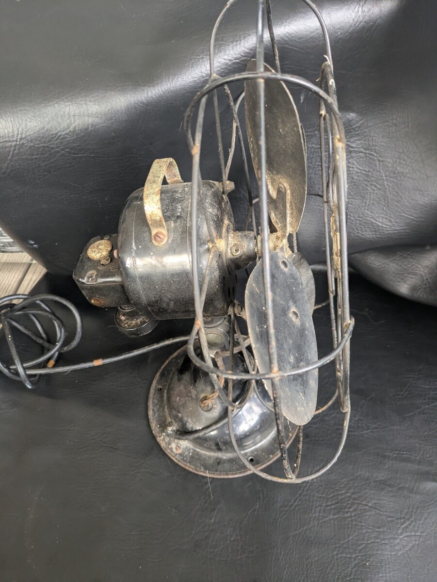 Le ventilateur oscillant Robbins Myers 1204 de 18 pouces a 3 vitesses et 4 pales de 1920 est un ventilateur electrique vintage concu pour une utilisation en interieur. Avec une forme ronde et un diametre de pale de 12 pouces, ce ventilateur antique presente une construction en fonte et une finition noire. Fabrique aux Etats-Unis au debut du 20e siecle, ce ventilateur de table/bureau est equipe d'un interrupteur permettant de regler la vitesse et possede la fonction d'oscillation originale. Le charme vintage et l'importance historique du ventilateur en font un ajout unique et precieux a n'importe quelle piece ou collection.