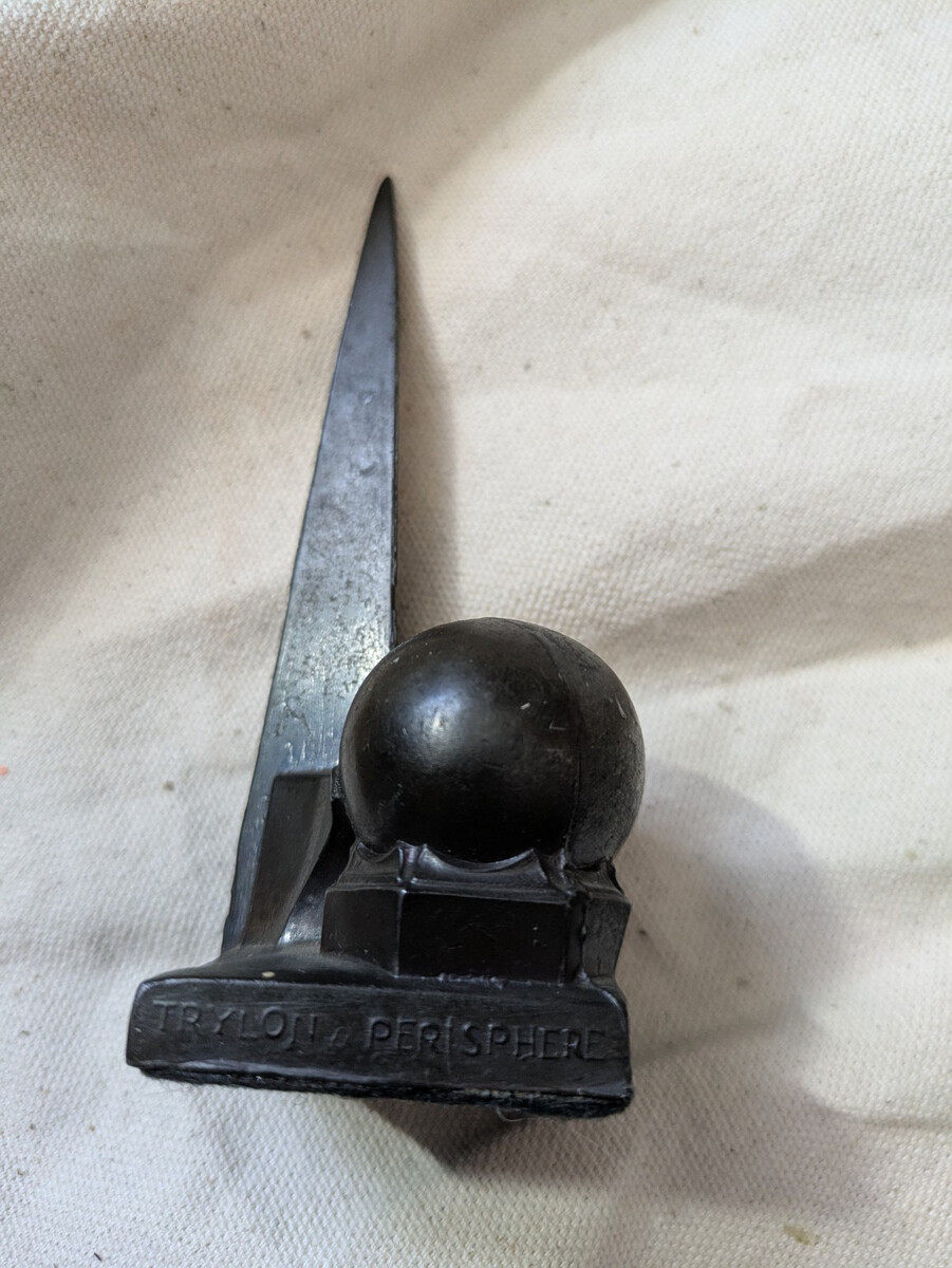 - 1939 New York Ny Monde Foire Trylon Perisphere Spelter Métal Souvenirs 4.5