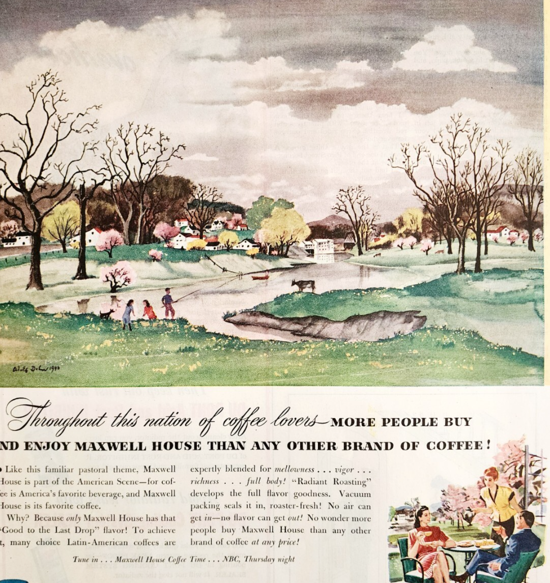 1947 Maxwell House Coffee Advertisement American Pastoral Scene Art DWJJ20
