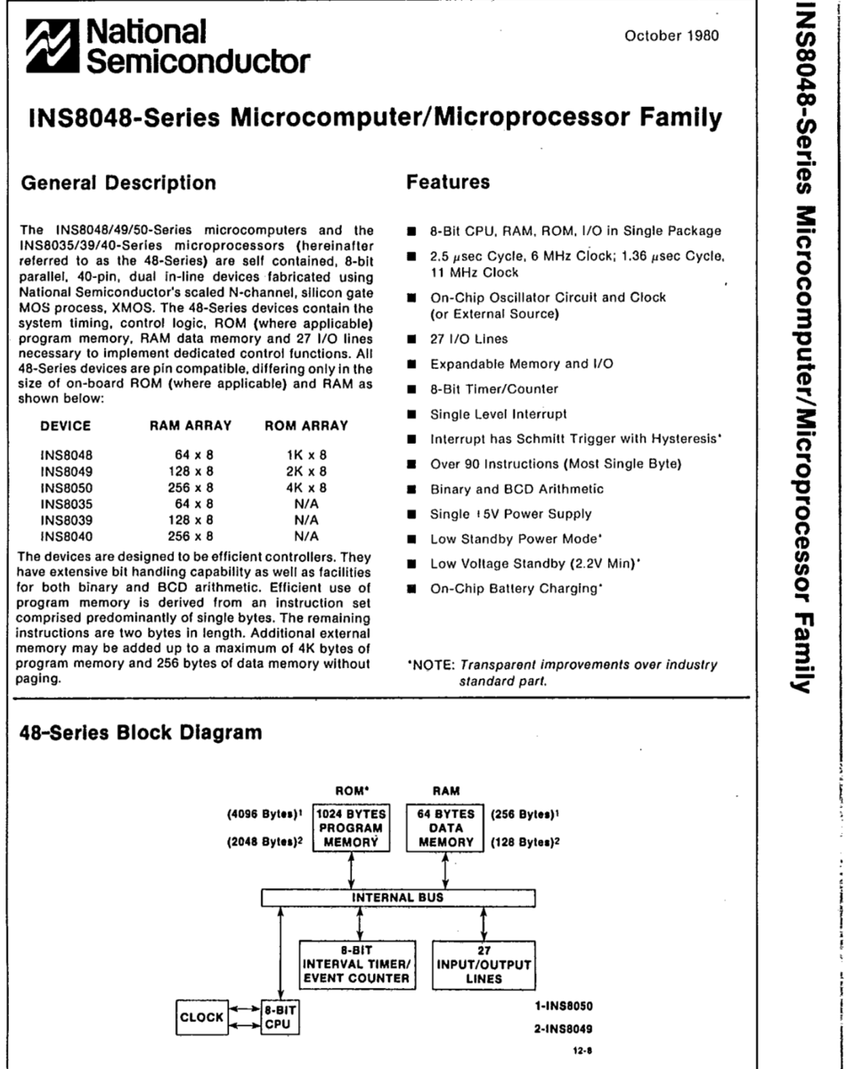 1 Piece - INS8039N-11 National Semiconductor CMOS 8-bit Microcontroller ROMless MCS-48 family DIP-40