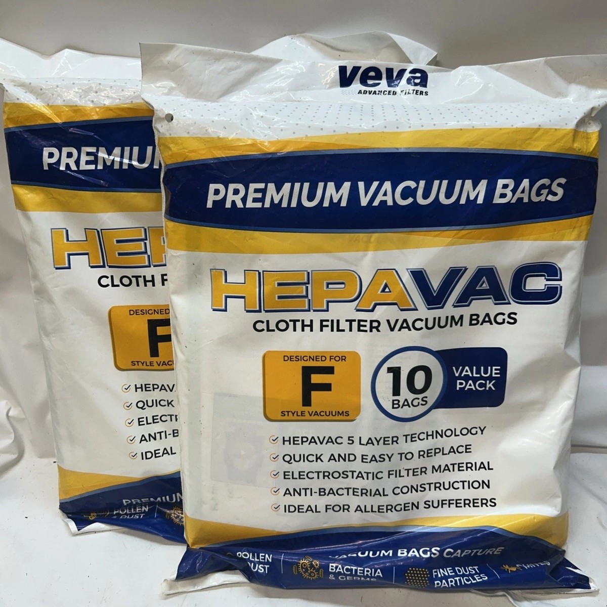 2X 10 Pack KIRBY Veva Vacuum Bags Style F HEPAVAC Filter Hepa Vac Bags Sentria