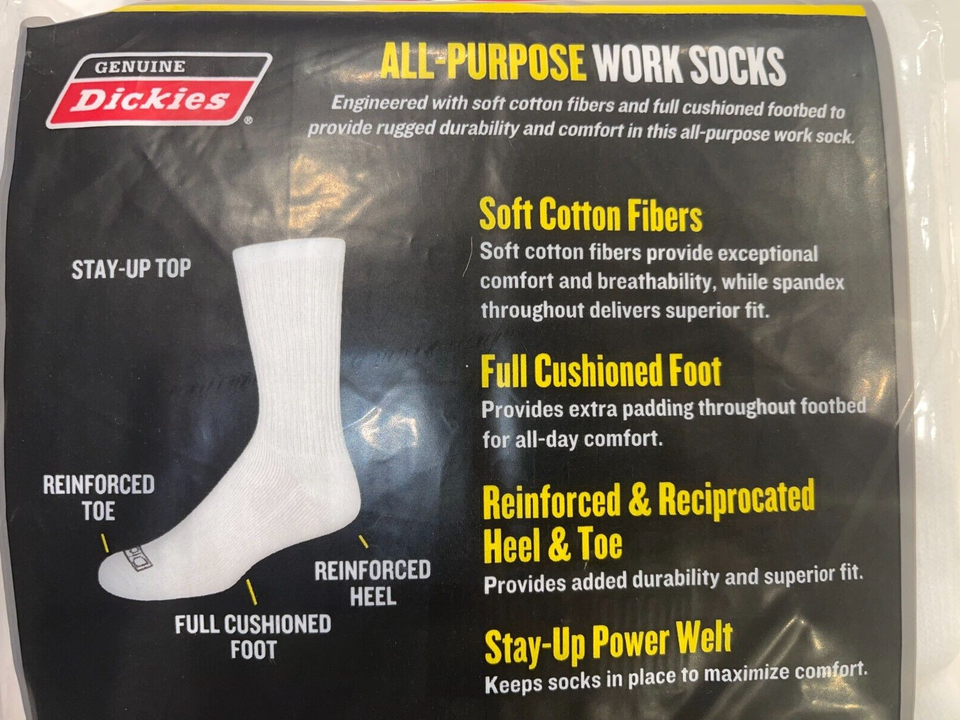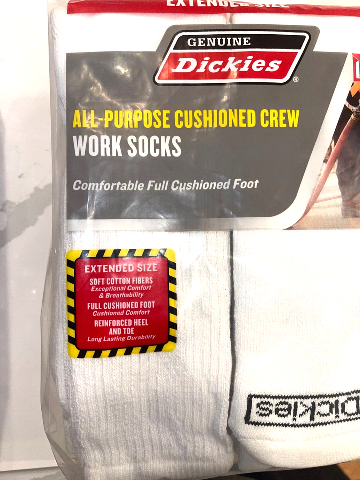 2025 DICKIES WHITE ALL PURPOSE FULL CUSHIONED CREW WORK SOCKS 3 PAIR SIZE 12-15