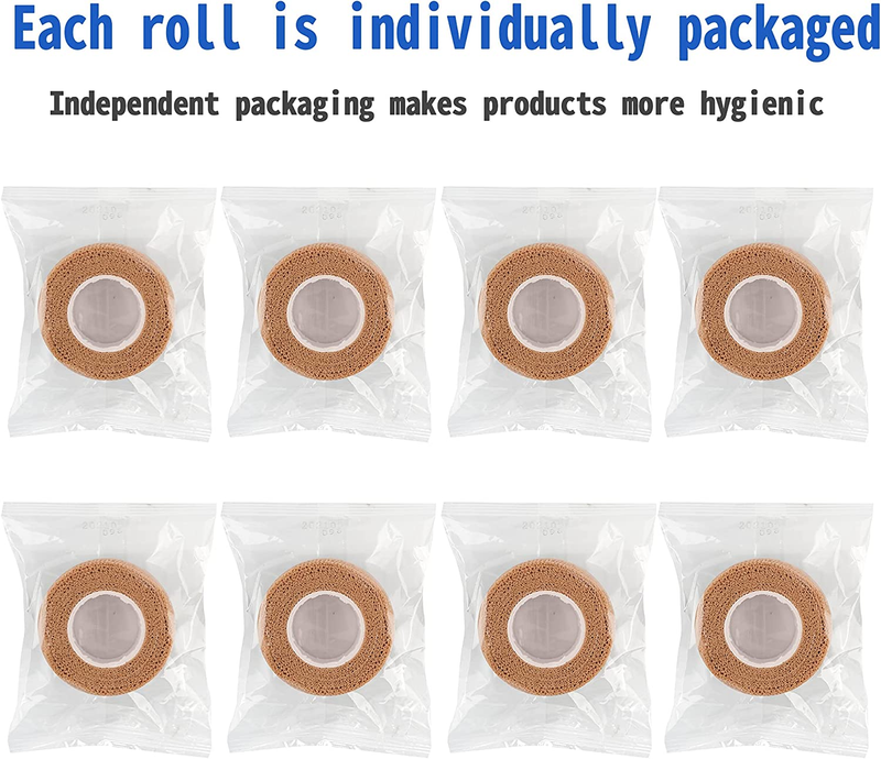 Mooerca Self Adherent Wrap Tape Quantity - Bandages wrap, 24 rolls of self adherent bandage, 1 inches X 5 yards each roll. Each package has 24 rolls ankle athletic tape of skin colour, individual package. Adhesive Bandage Wrap with High Precision Material - Self adhesive bandage wrap is made of high quality porous fabric and non-woven material. It's completely safe for skin because it can provide good ventilation.