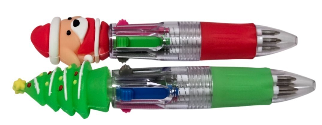 These are Christmas-themed multi-color Click Switchable Christmas Ballpoint Pens, which can be selected by pressing a corresponding button on the pen body.