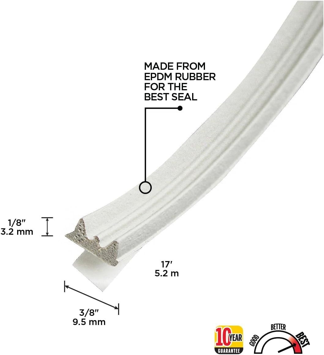 Each pack is 1/8 in. x 3/8 in. x 17 ft. White Premium Rubber Window Seal for Ex-Small Gaps