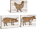 3 Pieces Farmhouse Kitchen Signs Cow Rooster and Pig Decors 7.9 X 5.9 Inch Rusti