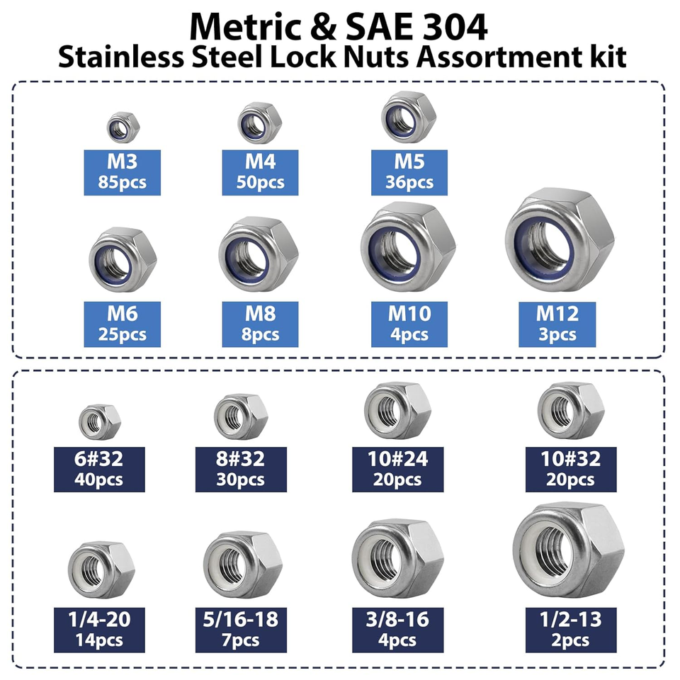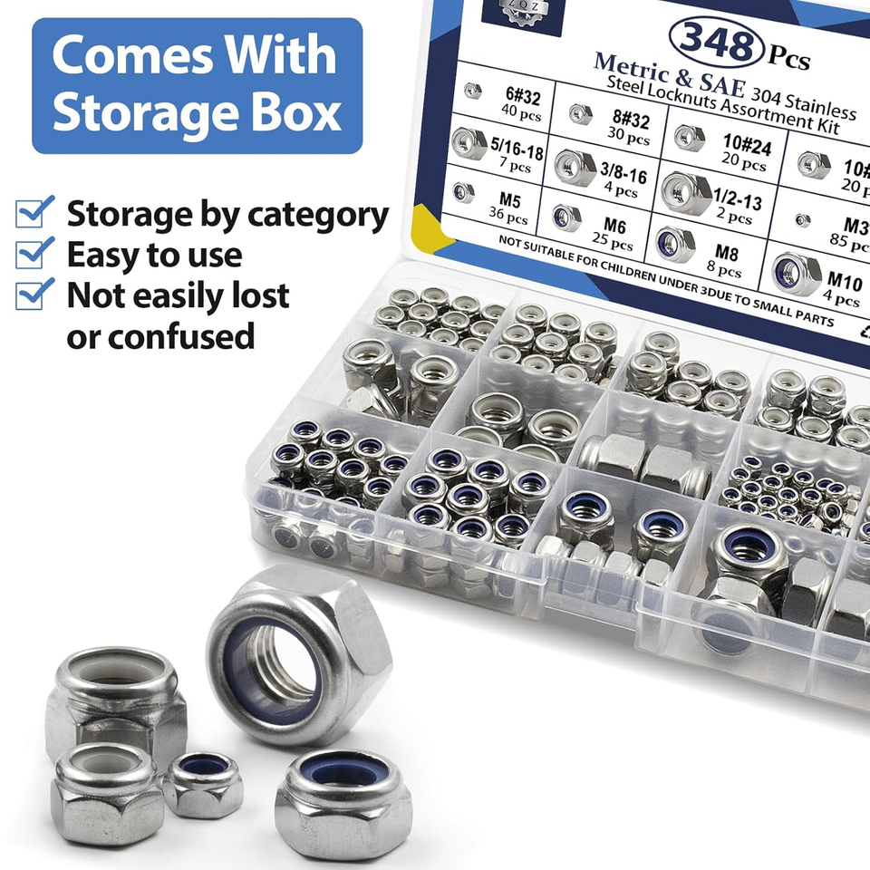 - 348-Piece SAE & Metric Nylon Insert Locknut Kit – Stainless Steel Nylock Nuts