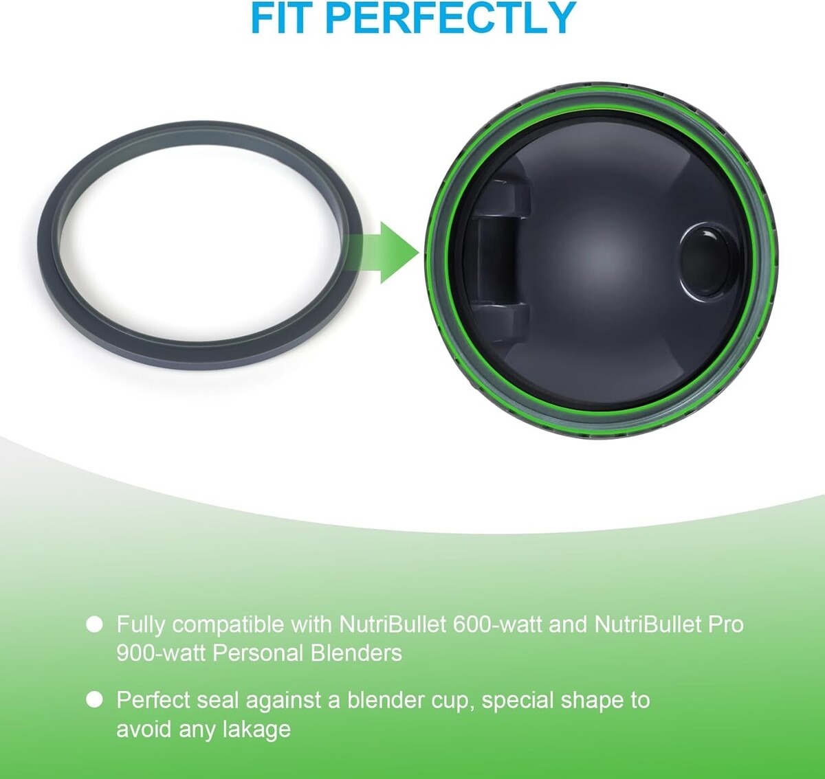 The seal ring gaskets for NutriBullet are dur-able and elastic, which provide a good seal for a long service time. Easy installation and cleaning, perfect matching and good choice for direct replacement of original parts.