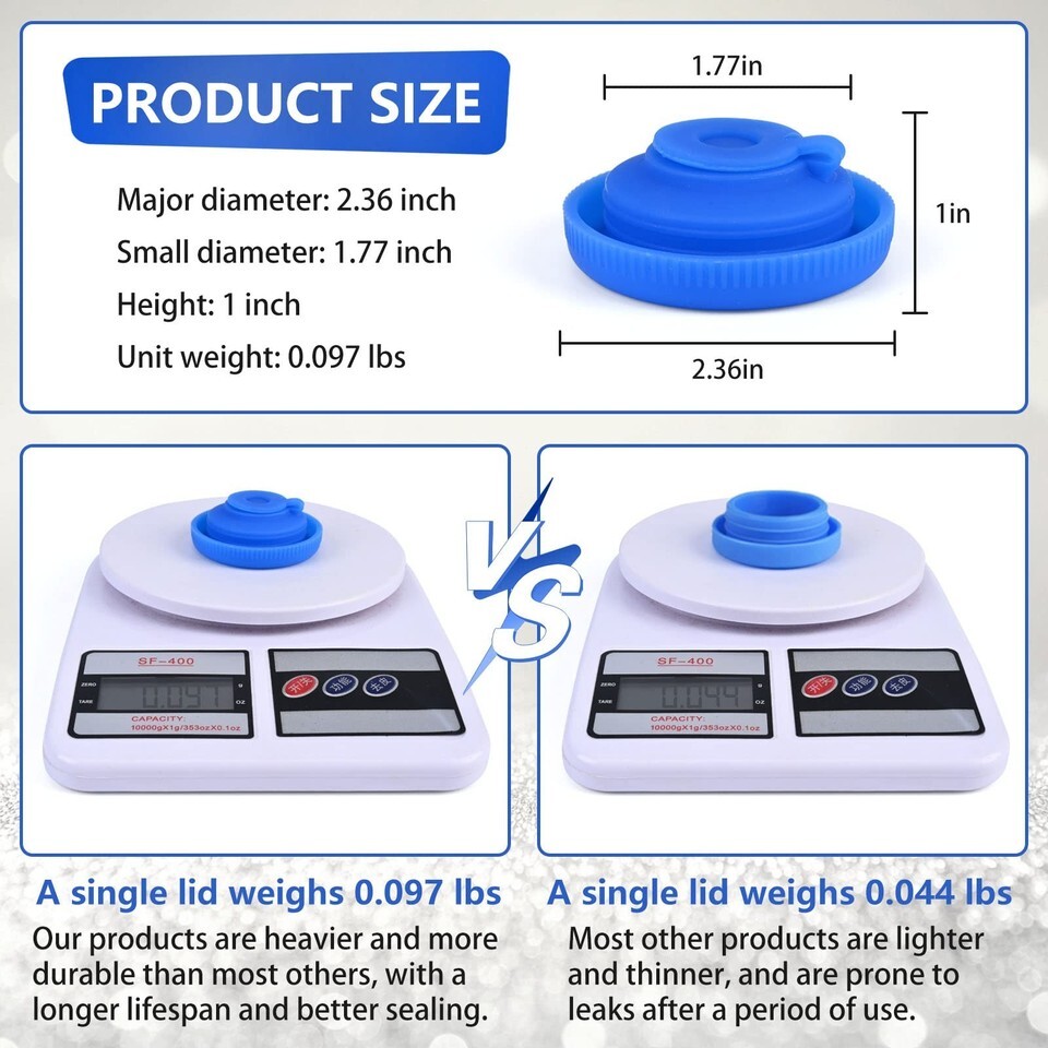 Switchable Water Outlet Design: This upgraded cap adds a water outlet, allowing it to be used with a water bottle dispenser and can also be used to store water. You just need to open or close the water outlet, this multifunctional cap can be used for different purposes Non Spill: The Kinggrand Kitchen jug cap with spill-resistant desig. High-quality cap provide a stronger seal. With our cap, the water won't drip when your water bottle hanging upside down and won't leak when placed sideways Widely Used: This jug cap fits any jug with a standard 55mm opening, including 5-gallon and 3-gallon jugs, and even fits screw top bottle. It's easy to install and remove, perfect for home or office water jugs Food Grade Silicone: The jug cap is made of food grade silicone, which is odor-free, soft and elastic. Make sure your drinking water remains pure and fresh during storage. Our original intention is to make you drink with confidence Environmental Friendly: Join us in protecting our environment by replacing disposable caps with reusable silicone caps. Each reusable water jug cap can be used thousands of times, helping you save dollars over a few years. If you don't like this water jug cap, you can definitely get a refund.