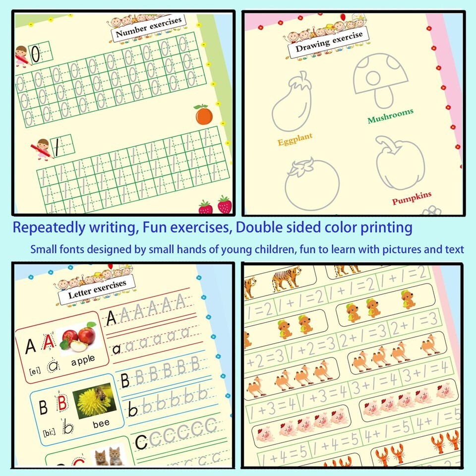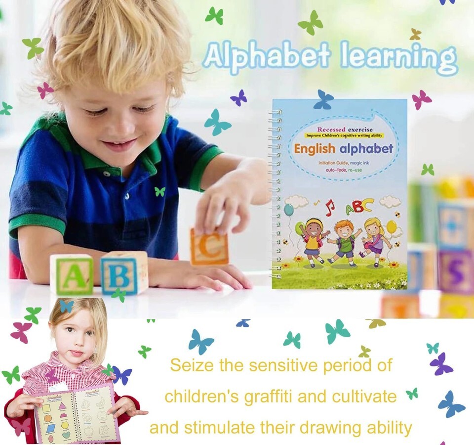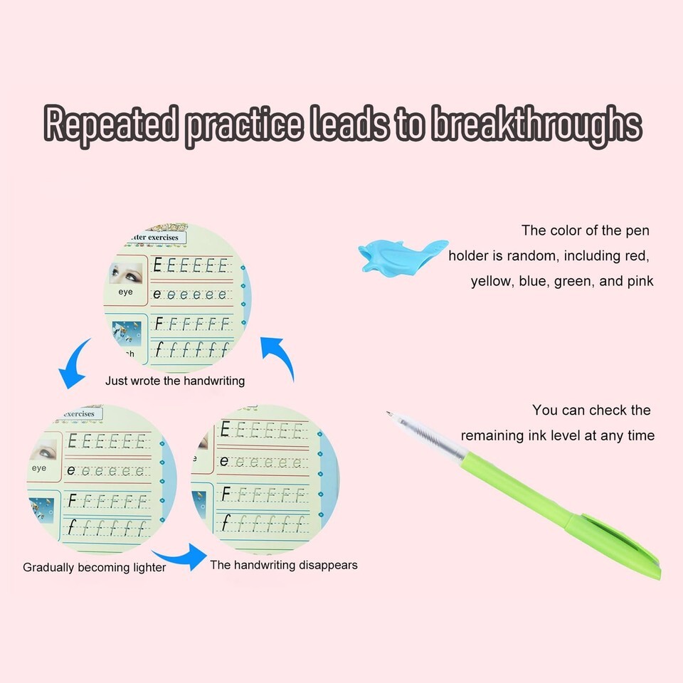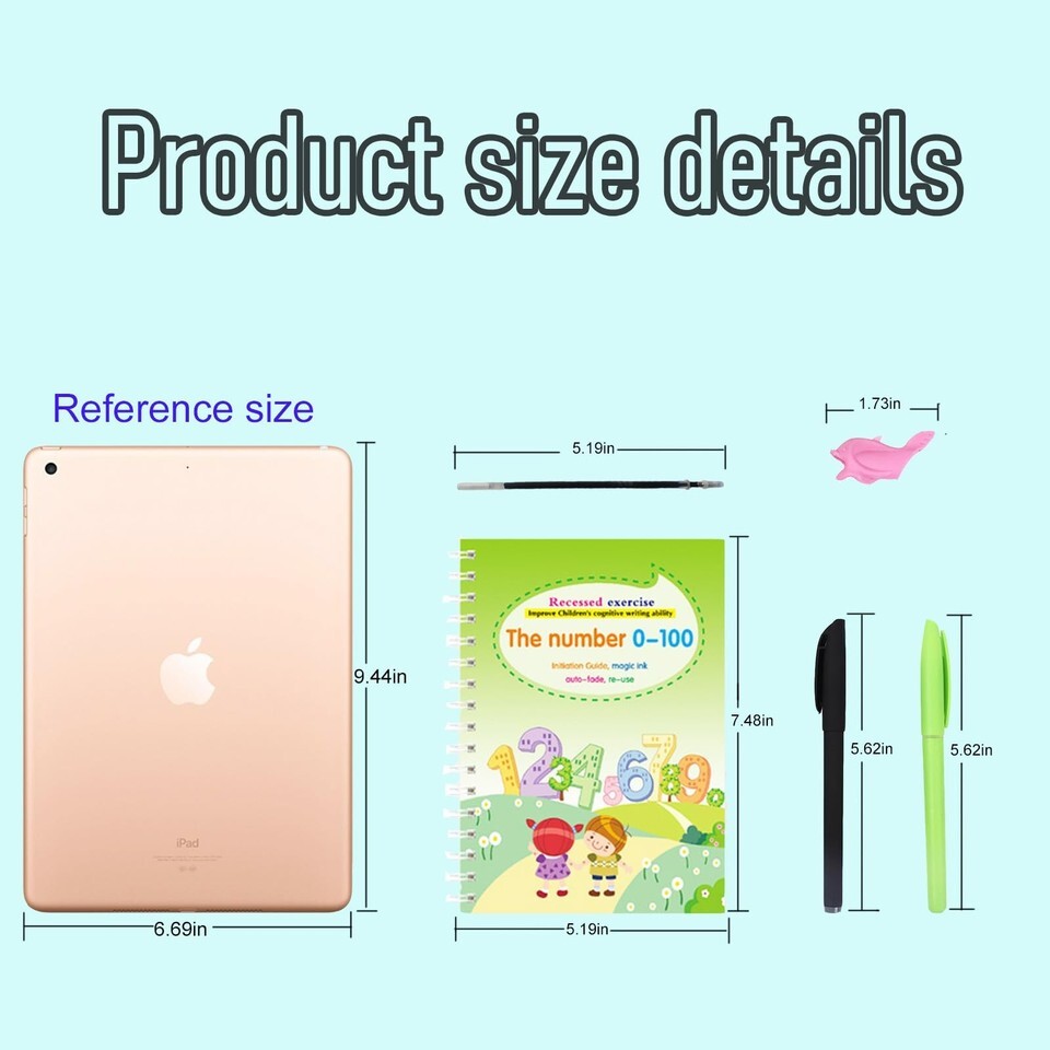 ?magic grooved writing practice Set ?: Designed specifically for tracing books for kids ages 3-5, handwriting practice for kids 5-7, this set includes 1 letter book, 1 picture book, 1 addition and subtraction book, 1 number book 1-100, 2 pens, 2 pen holders, and 11 pen refills. ? Reusable Function ?: The matching pen core uses magic ink, which will automatically disappear within 30 minutes after writing, turning the page into a fresh canvas. Do not use any ballpoint pen, but use the matching pen core or other specialized ink pen cores to allow your child to continue enjoying the fun of writing. ? Rich Content ?: Bright colors and cute shapes can stimulate children's curiosity and self motivation, encourage them to explore letters, numbers, mathematics, and painting with joy and enthusiasm, and improve their understanding of letters and numbers. ? Early Education Learning Tool ?: Provides a soft silicone grip pen trainer to ensure that children master the perfect grip method and lines as early as possible, guiding them to write and correcting incorrect grip posture and writing methods. It is a good tool for cultivating children's patience and hand eye coordination skills. ? Perfect Gift ?: In addition to being effective learning tools for kindergarten and preschool teachers, they are also suitable as gifts for children on various holidays such as Children's Day, birthdays, Christmas, and New Year. We offer 1-5 Days Free shipping 30-Days Free returns