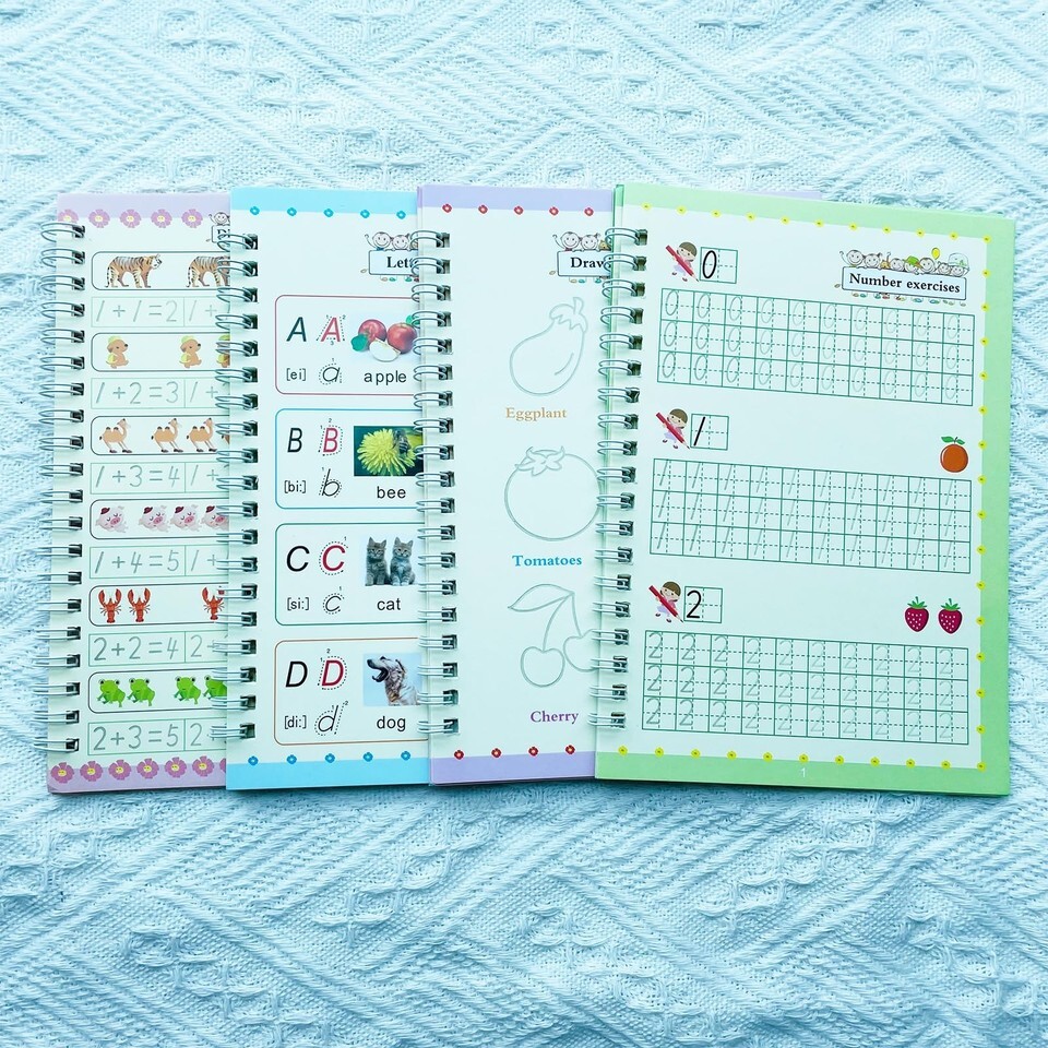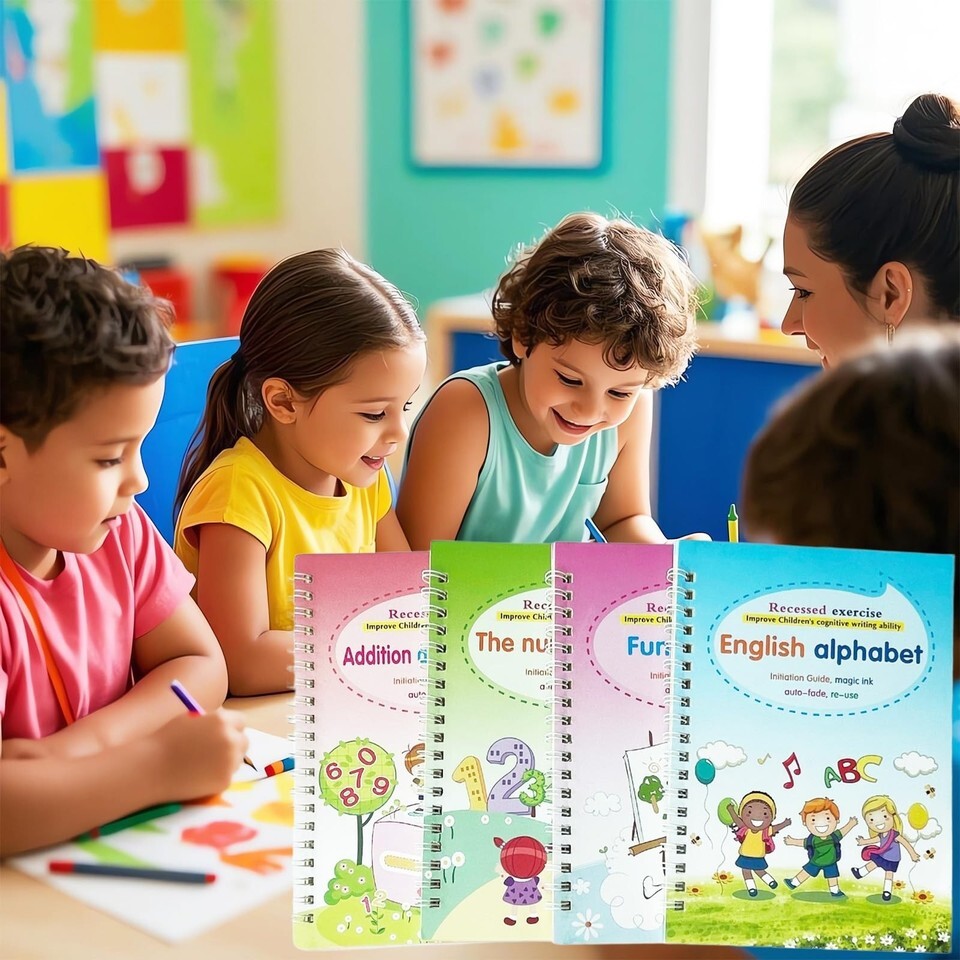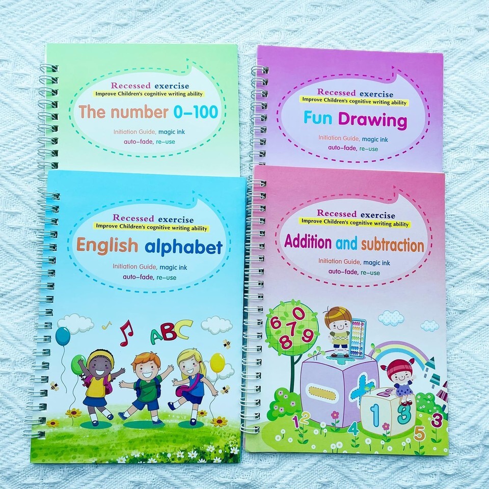 4 Reusable Grooved Writing Books for Kids Educational Magic Copy Books With Pens