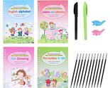 Primary image for 4 Reusable Grooved Writing Books for Kids Educational Magic Copy Books With Pens