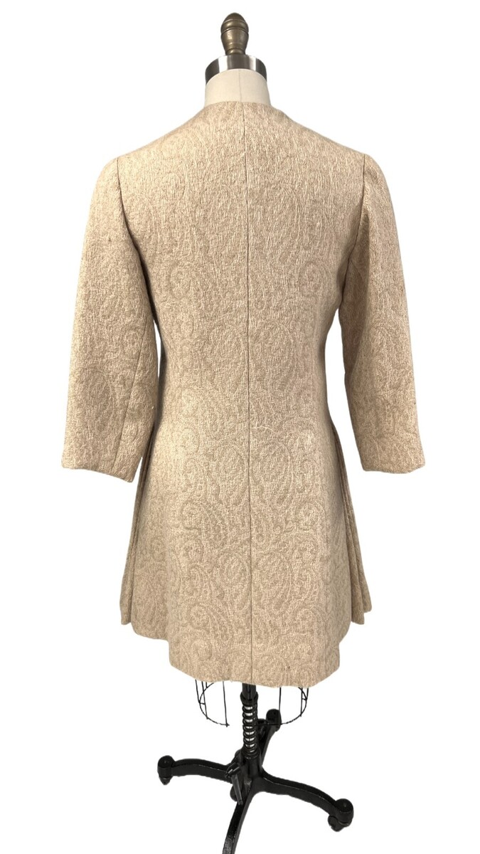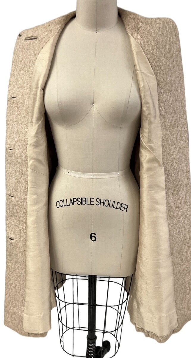 - 60s VTG Galanos Beige Wool Coat Hidden Placket Mod Minimalist S Flaws Costume